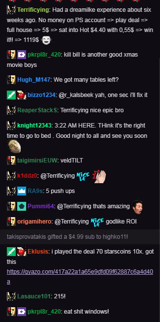 >>37589 Если бы ты играл нл10 в 5бб, понимал бы какую хуйню несёшь, но ок, я разъясню. 5бб на нл10 это 50 центов. На нл2 аналогичная сумма эквивалентна 25бб/100. Этот человек за месяц сыграл миллион раздач не чтобы заработать ссаные 2к, а ради мирового рекорда и данных по дисперсии. Он ещё использовал баг старзов, позволяющий катать больше 24х столов. Катал с утра до ночи, откатал в 12бб/100. Ты полный кусок долбоеба, если готов катать в месяц 300 часов ради тысячи долларов. Лучше почку продай, кому-нибудь нужнее будет. У дисперсионного за последние 5 или 6 сессий около 800 долларов за 10к рук. Какой же ты больной. Да и вообще, сначала до нл10 доползи, а то твою поебень больно читать.
