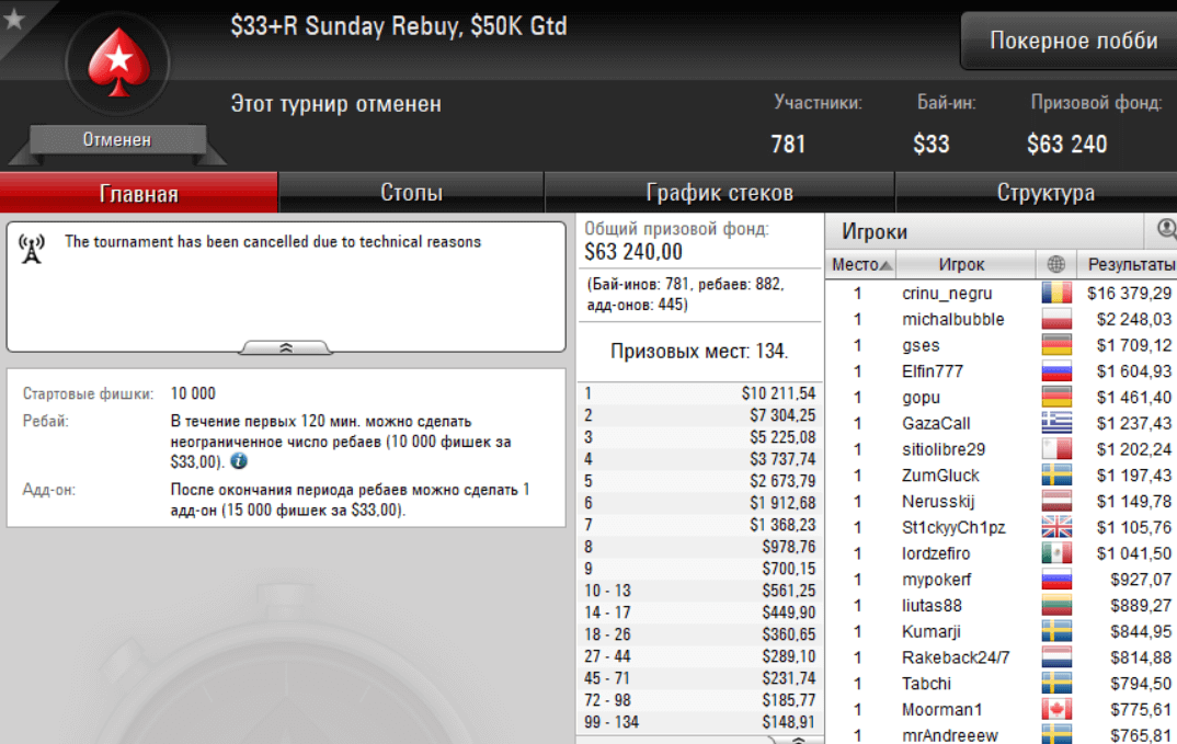 Вы заняли в турнире 12 место. Поздравляем! Награда в размере $1,63 USD была зачислена на Ваш счет Stars по достижении призовой зоны, а остальные $53,37 USD были зачислены после того, как Вы завершили участие в турнире.