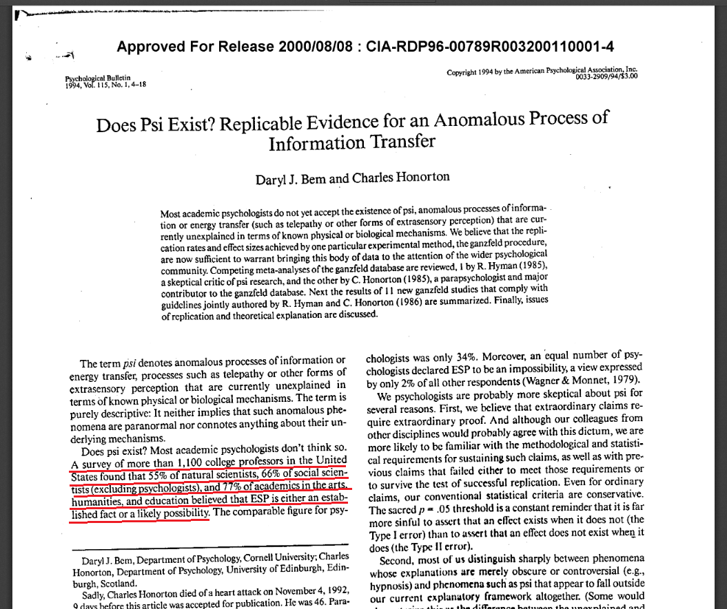 Алсо, я серьезно, под ясновидением имеется в виду ясновидение. Вот на скрине опрос, проведенный среди американских ученых примерно в 1985ом и больше половины опрошенных на тот момент склонялись к тому, что ясновидение существует Серьезная анимекартинка для привлечения внимания.