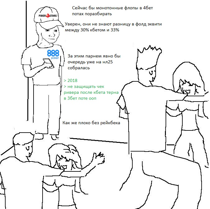 НАСЕЛЕКТИЛ ВИПАЧА @ ИГРАЕШЬ СТОЛ, РАДУЕШЬСЯ ЖИЗНИ @ ИГРАЕШЬ, ИГРАЕШЬ @ ВДРУГ РЕГ ЛИВАЕТ @ НА ПУСТОЕ МЕСТО НИКТО НЕ САДИТСЯ @ ЧЕРЕЗ ПАРУ РУК ЛИВАЮТ ЕЩЕ ДВА РЕГА @ ПОСЛЕДНИЙ РЕГ УХОДИТ, НЕ ЗАБЫВ СПИЗДИТЬ БАТТОН @ ОСТАЕШЬСЯ С ВИПАЧОМ ОДИН НА ОДИН @ ИГРАЕШЬ ПАРУ РУК @ УХОДИШЬ В СИТАУТ @ "ТАК КТО ЖЕ БЫЛ ФИШОМ ЗА ЭТИМ СТОЛОМ!?"