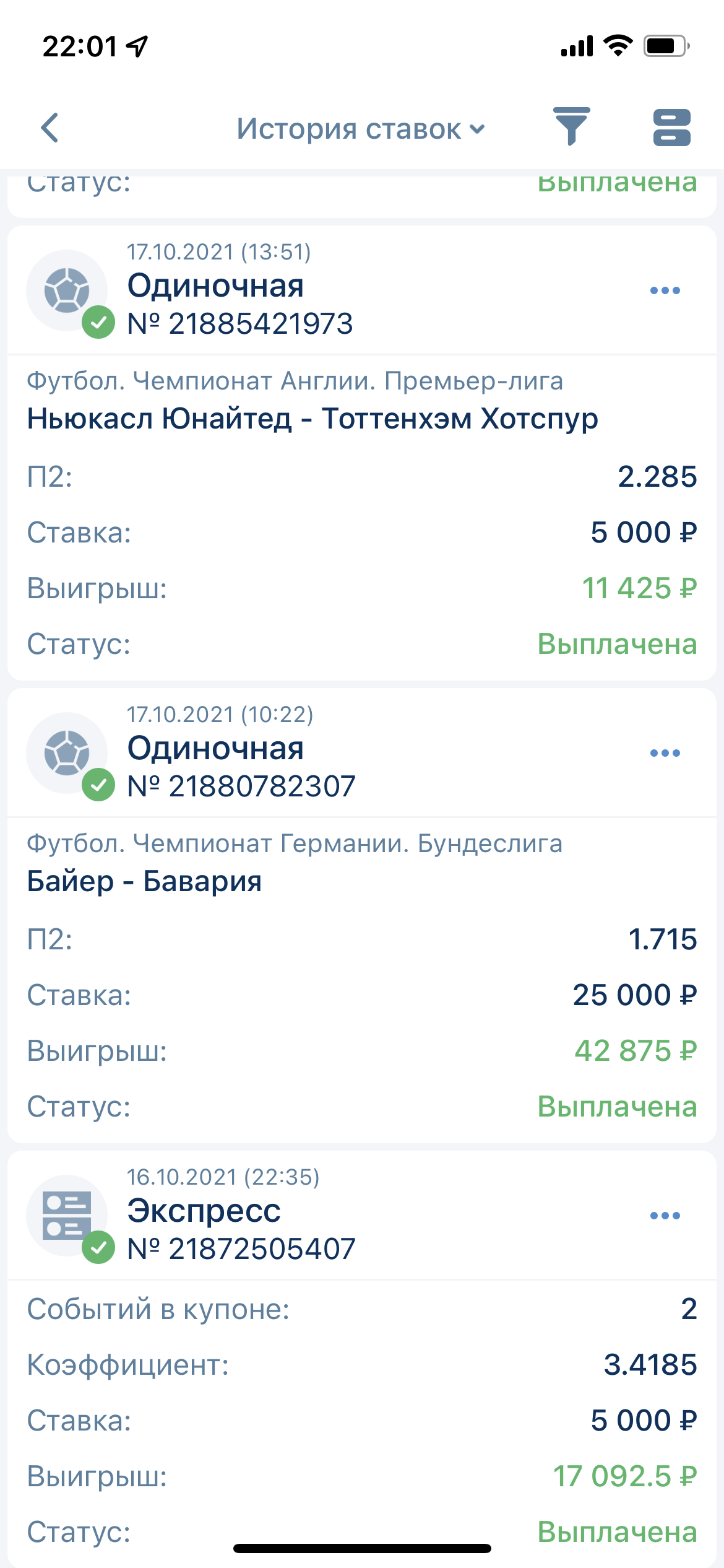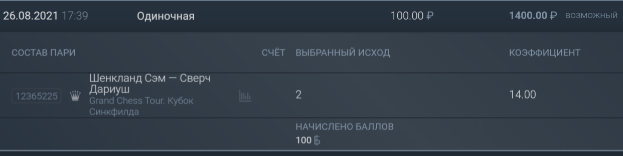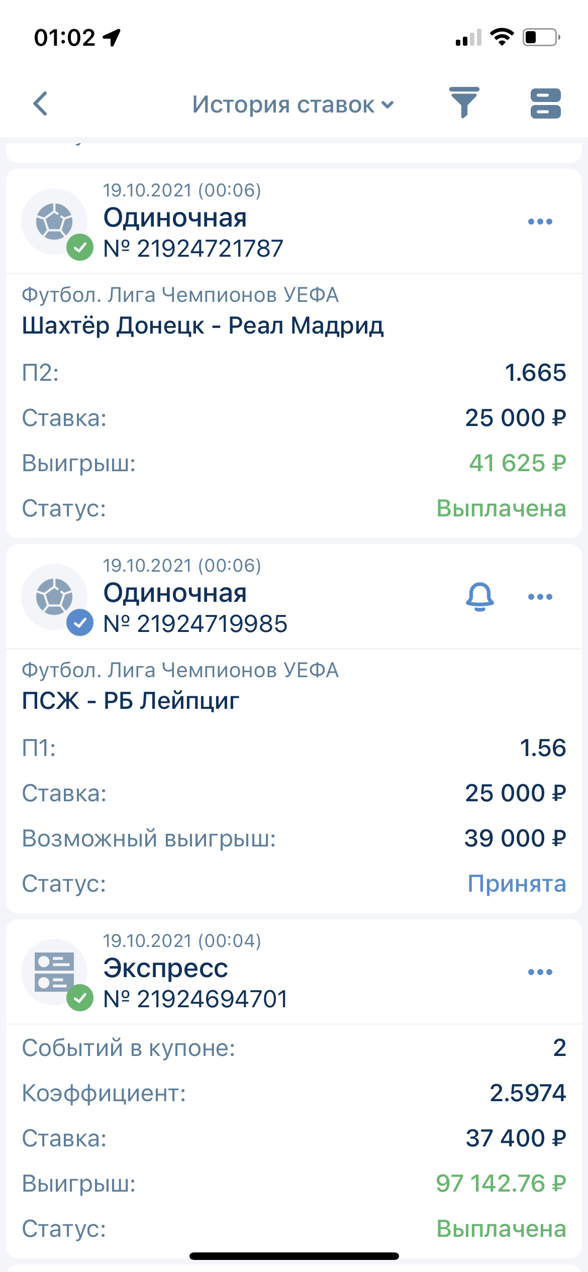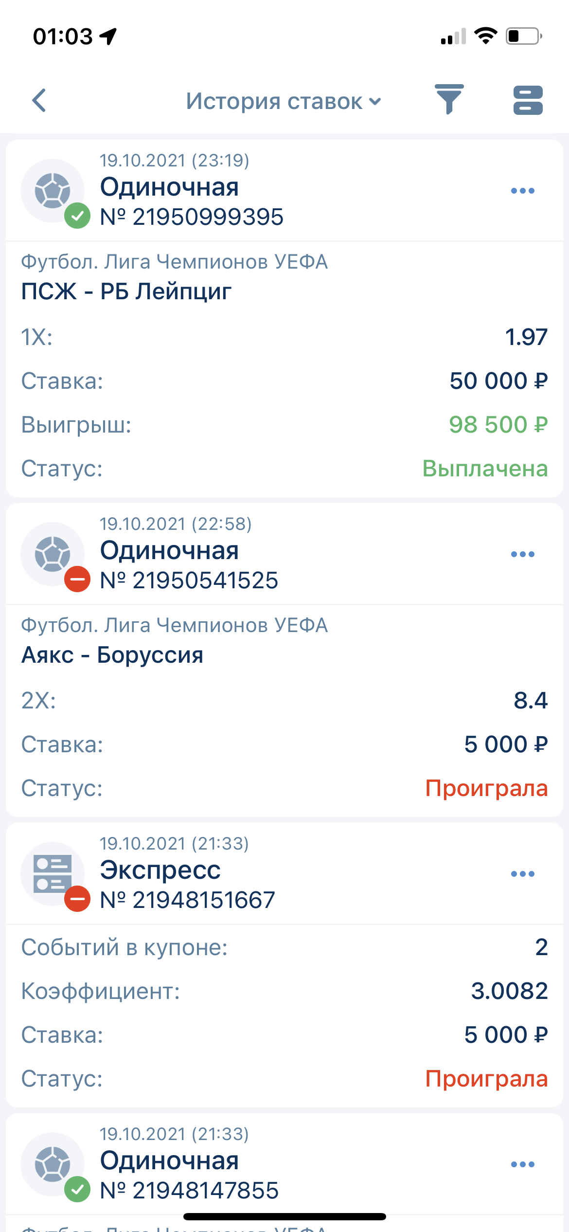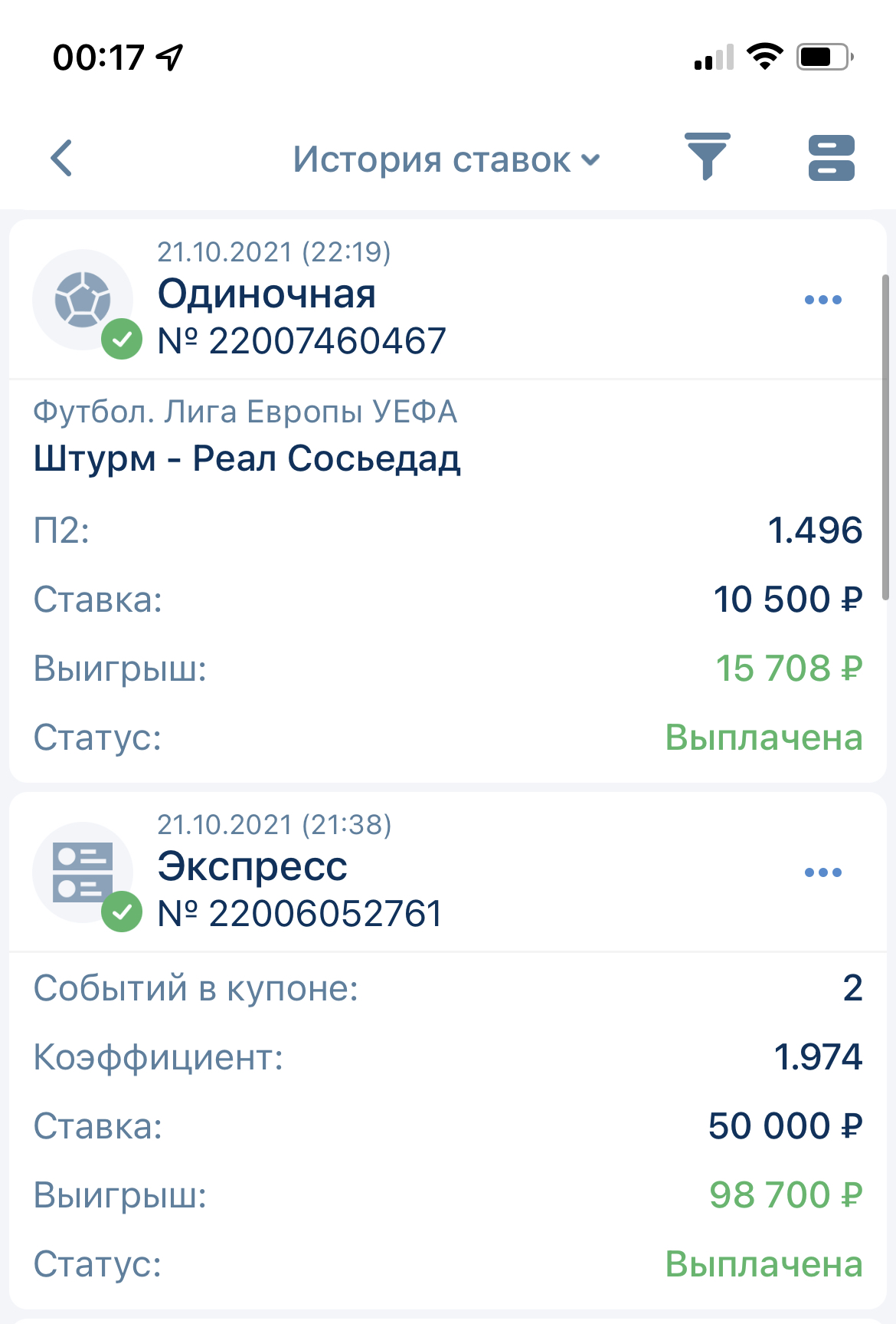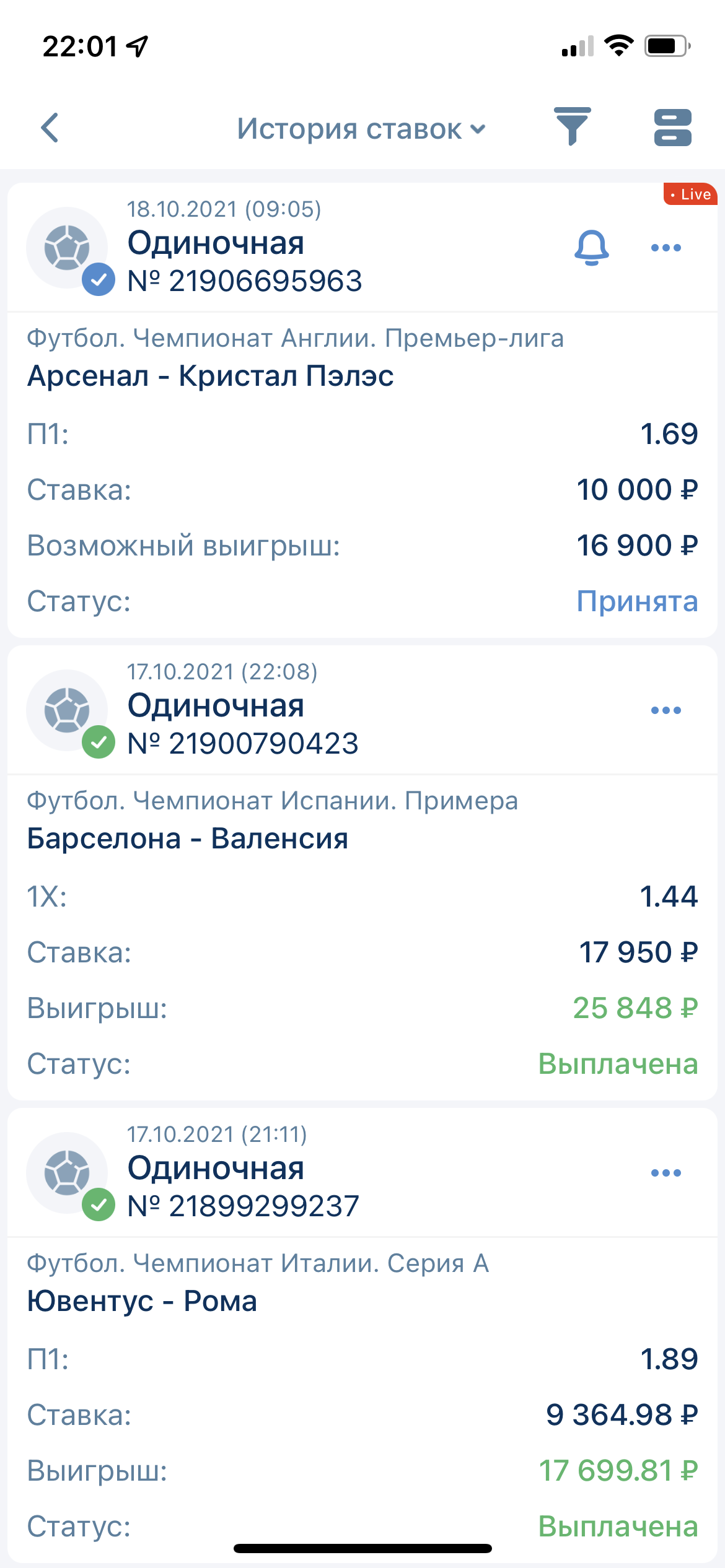 Однажды я сделал ставку на последние гроши и выиграл 27к. Хуй знает что там за маловероятное событие было, но это был футбол, год 2015 наверно. Было пиздец как приятно умножить свои 300 рублей в десятки раз, но я подобных раскладов больше не встречал.