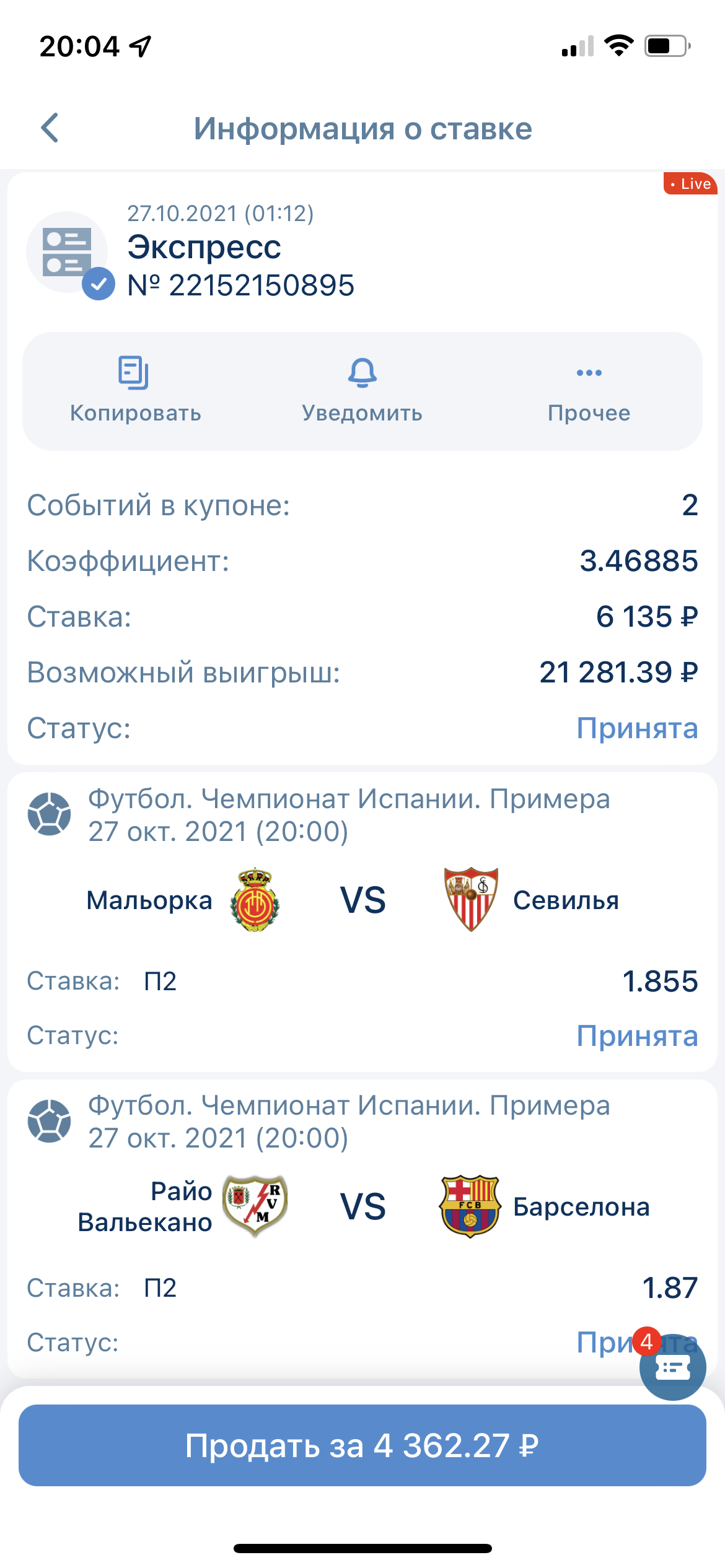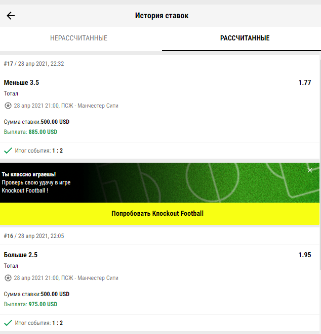 Я в ахуе с другого: с того, что сраный бук сегодня добавлял в лайв матчи результативных команды с получасовой задержкой (уже после первых занесённых голов) и в наглую завышал коэффициенты на кол-во забитых голов в матчах, где изначально было очевидно что больше 2 голов скорее всего в итоге не будет. А в случае с Монако, я заранее готовился к ничейке 1:1, но эти пидоры меня побрили. В итоге за день два возврата по 2к и -2к на макаках из Монако.
