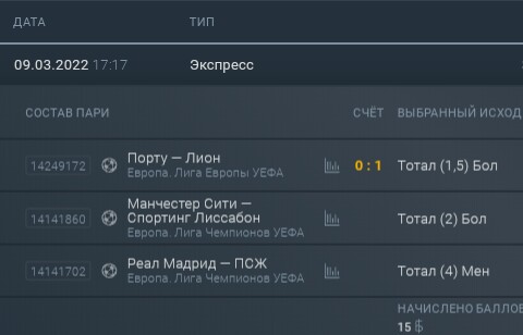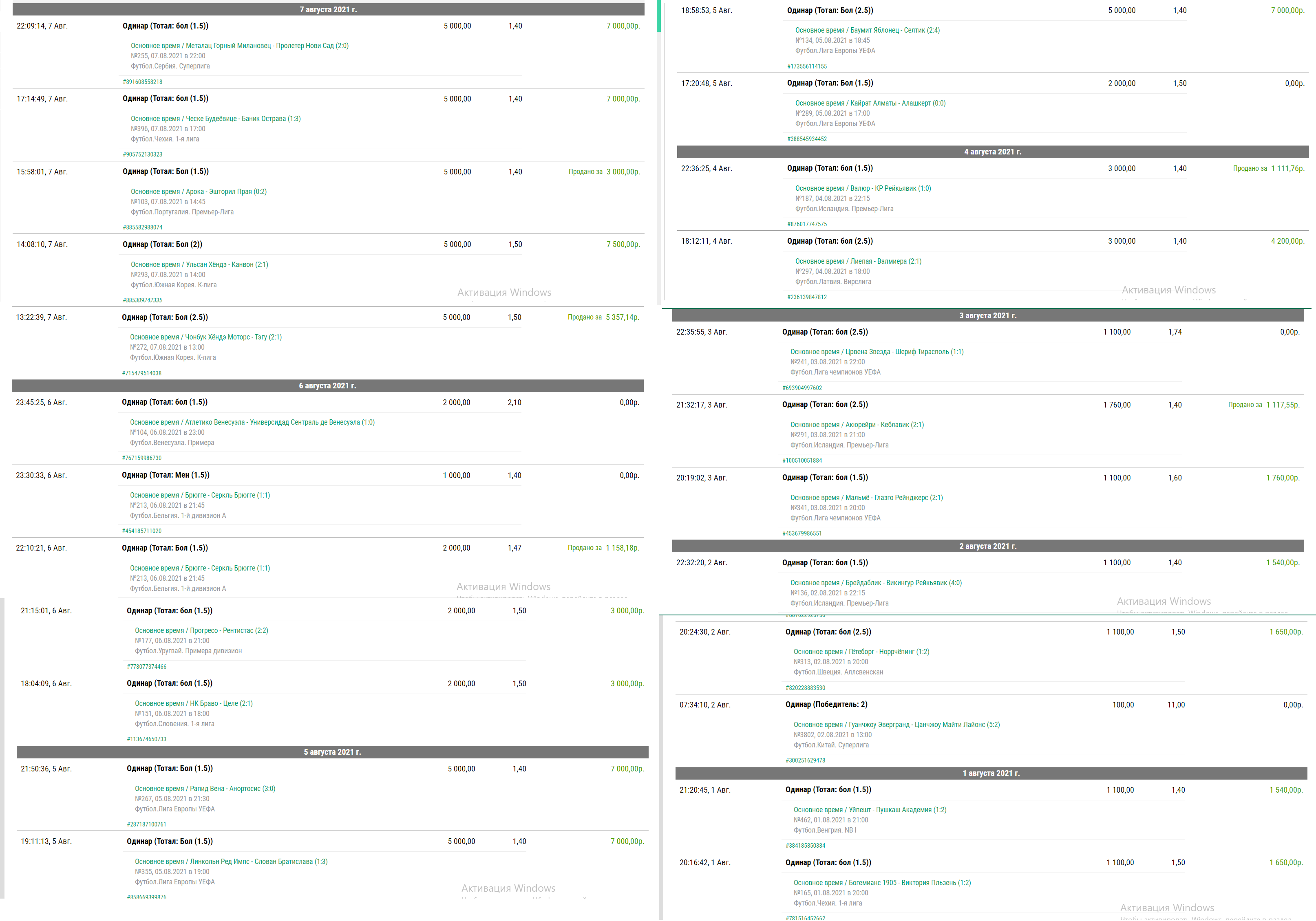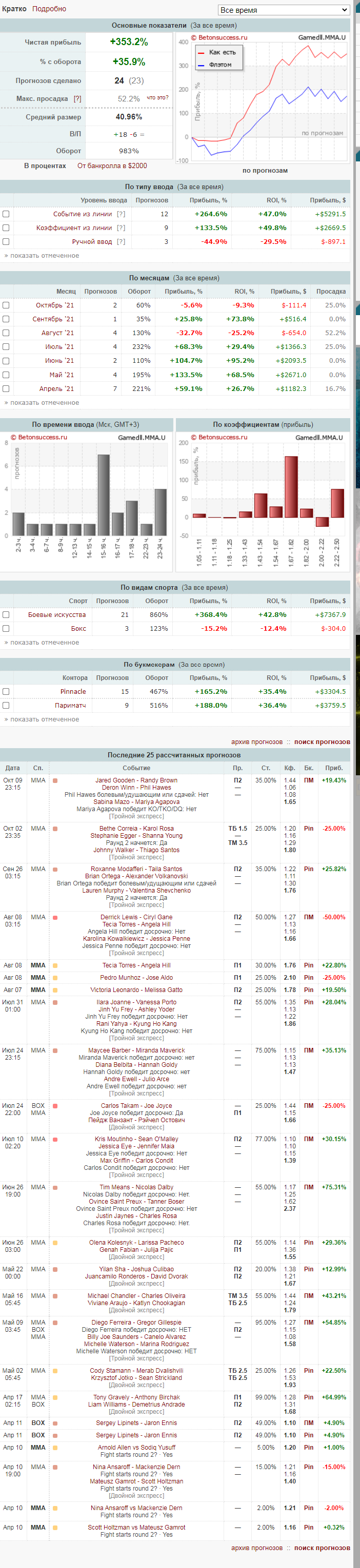Вообщем тестирую три системы уже на протяжении дохуя времени, практически больше года упорно варюсь в этом. Вывод однозначный. Решает одна ставка в неделю со скипом всех неуверенных вариантов и подбором самого уверенного, самого надежного и единственного на который и совершается ставка, не важны коэффициенты, главное убежденность в проходе, очевидно ufc или бокс. На пиках тот что +352 именно эта система. Считайте я изобрел грааль Я пошел богатеть всем гудбай
