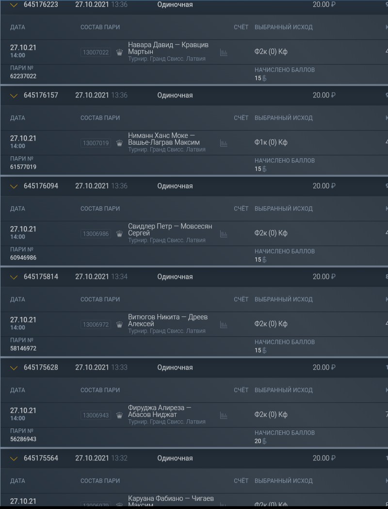 5. С кэфами 1,31 - 1,4 ситуация очень двоякая. Где-то они шли хорошо, где-то нет. Низкие кэфы - 1,3 и ниже - это в целом околонулевой дроч. Конечно, есть хорошие ставки на кэфы в районе 1,25 - винстрики Грикспура, Отте, братьев Черундоло, Баеса. Их нужно очень хорошо фильтровать. Ставить изо дня в день на Баеса и Грикспура скучно, но это неплохая прибавка, так как к весне я планирую выйти на флет в 5000 рублей.