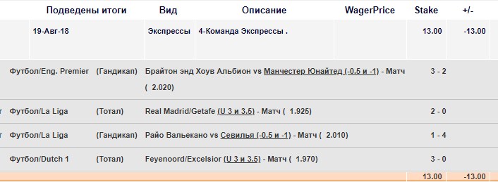 На этапе плей-офф я постарался исправить эту ситуацию. За 17 ставок результаты следующие: Зашло - 9, средний коэффициент 2.204 Возврат - 2, средний коэффициент 2.025 Не зашло - 6, средний коэффициент 2.71