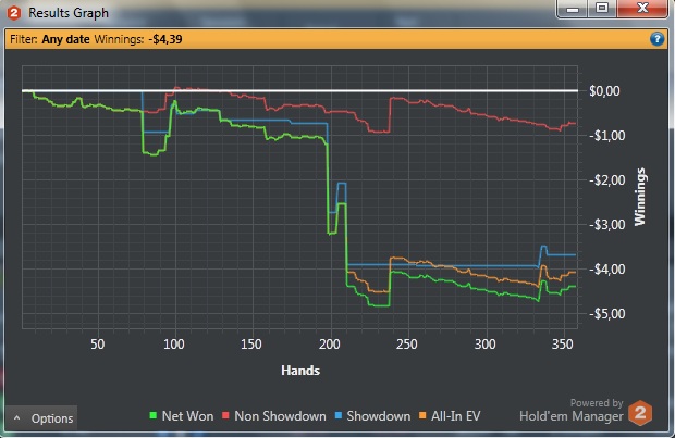 Итак, игра и хм2 были скорректированы. Вчера немножко поиграл, сегодня вообще чуть-чуть, т.к. заебался за весь день; общий график за оба дня пикрилейтед, играл за одним столом. 3 недели смотрел воды, погромиста из себя вообще не делал, хотя по плану 2 дня в неделю погромирования. Так что ближайшие 3 недели буду картами заниматься пт-вс, а остальные 4 дня буду погромиста себе делать, так скажем верну себе прогулы. Вопрос возник: в воде по 3бетпоту ебань какая-то была, мол нужно загнать стек за 2 ставки, т.е. флоп и терн. На флопе ставим 1\2, а на терне пуш и этот пуш по своей сути будет, как ставка 3\4. Поиграл, блядь, понял, что хуйня,т.к. на флопе банк 20, на терне 40 и в стеке у нас 80, что овербет в 2 пота. Короче прикинул для себя если хочу загнать стек, то на флопе и терне 1\2, по риверу пуш; поправьте, если хуйню придумал. А так уперся дважды допером в стриты, когда их особо-то и не должно было быть, как и сетов, да и хуй с ним. Красная пока радует, будет хорошо, если и дальше будет около нуля находиться. Но дистанция никакая, сам понимаю.