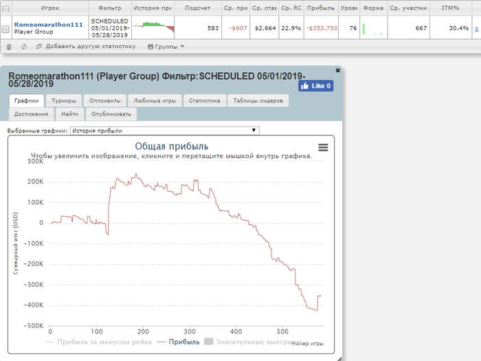 >>45070 >какой вообще реально допустимый (в среднем) показатель попадания в призы в МТТ на публику около 1000 человек 12-17% у ТОП-регов. Но на лимитах выше обычно поля меньше 1к тел и там ИТМ уже до 20-25% доходит. Главное скорее ROI, а не ITM.