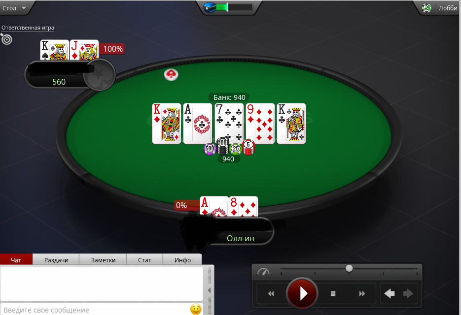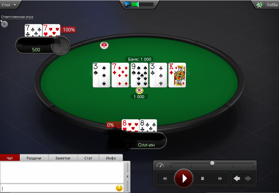 Сам играю непрофессионально, 2 года катаю понемногу свои 40 долларов - ни туда, ни сюда. Играю нечасто, по настроению, но всё-равно - интересно, как правильно тут ситуацию расценивать.