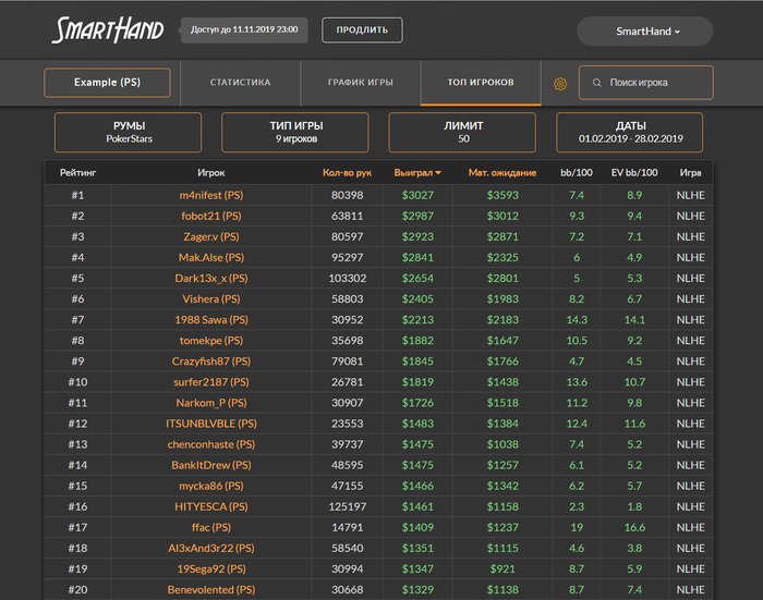 >>44486 >Спасибо большое. Хоть какой-то референс будет по современным BSS тенденциям. Я не очень соответствую этим тенденциям, у меня перекосы везде где можно, начиная с оверфолда флопа, 4беты, флоп-тёрн в 3бет потах етц. Довольно неконвенционально играю, очень много внимания уделяю статам, поэтому даже не представляю, что можно извлечь из такой игры. Может какие-то неочевидные эксплоитные линии. Статы нита обыкновенного, но на автопилоте не играю и от рейнджа своего не играю практически.