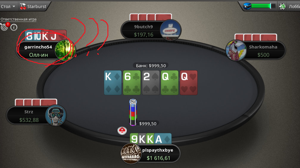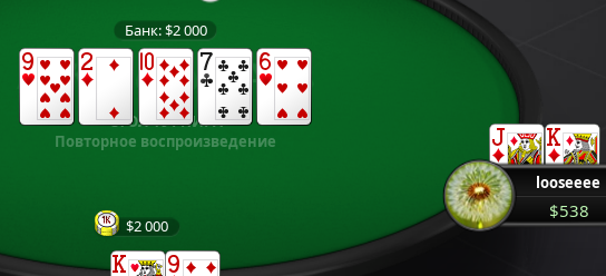 Если я чекбекаю, значит слабая рука, значит можно и инициативу забрать. Я ждал пока они сбросят. > Нахуя ты колишь с ней рейзы ривера, где все доехало? Ну ступил, ёпта. Можно конечно было додуматься что ему сет доехал. Подумал что он так блефануть хочет. Хрен его знает, может ему залупа до рта доехала, а он не хочет отдавать банк.