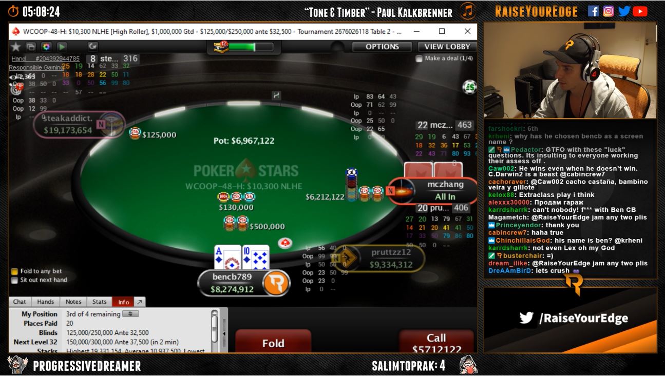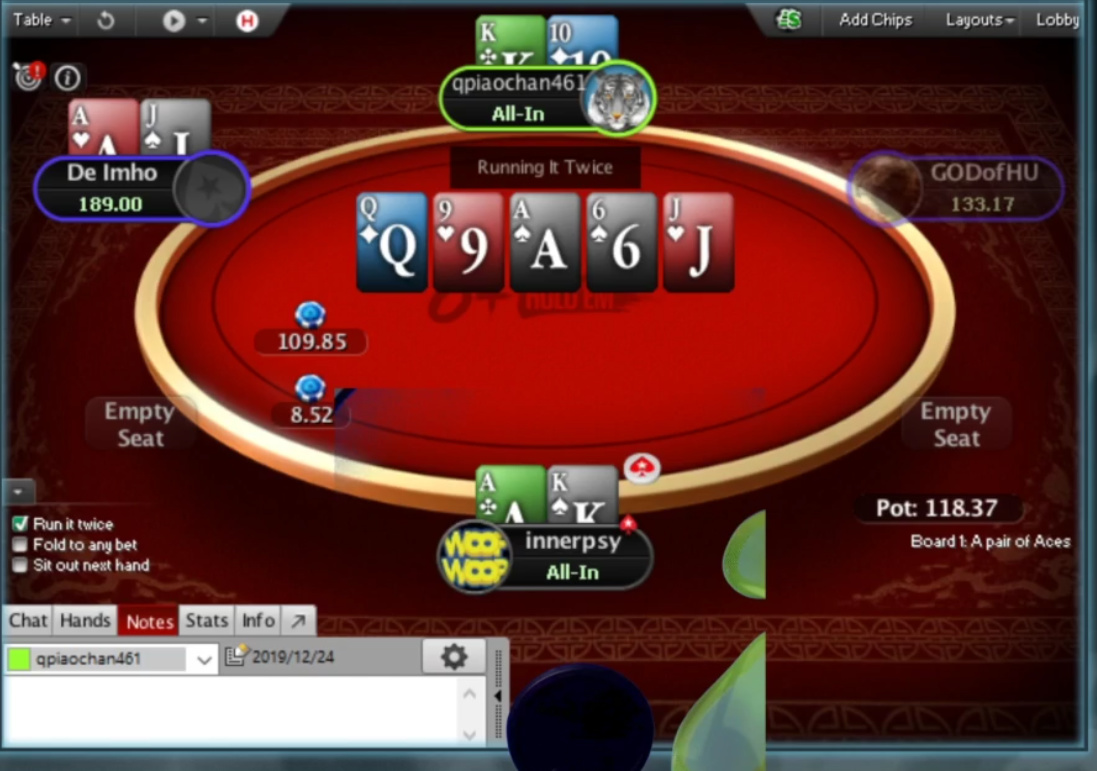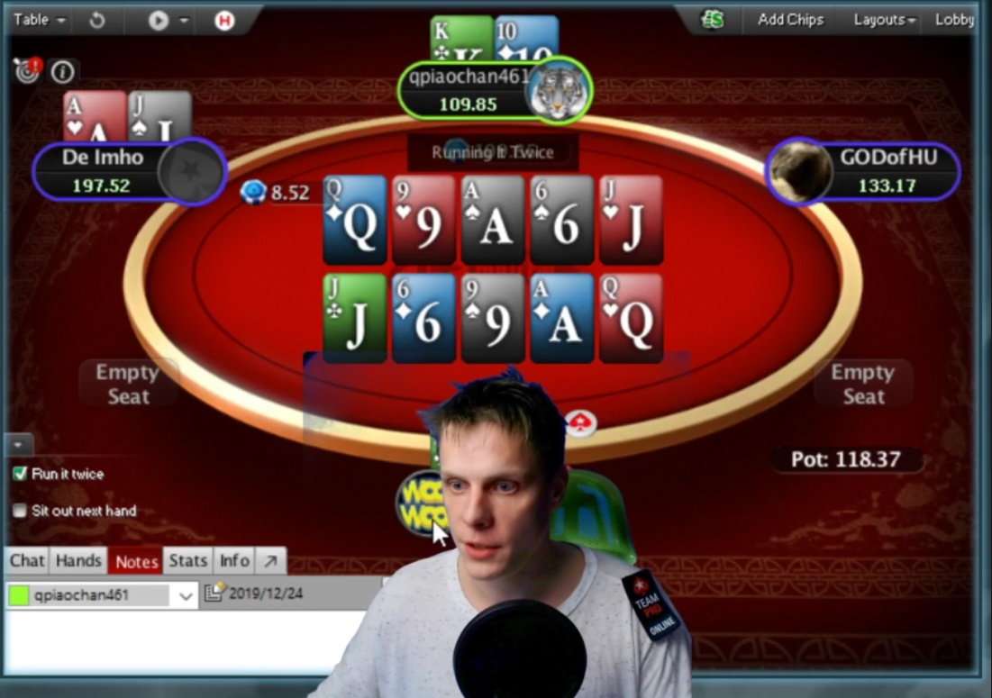 >>44365 > Смотрю иногда ВОДы с NL200-500, но там мало экшена обычно и за сессию 1-2 3бет пота. Ну хуй знает, как на стрим иннера не зайдешь, так там 3- и 4-бет потов прилично набирается. Он конечно тот еще персонаж, но иногда объясняет почему сыграл так, а не иначе.