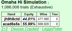 >>44554 Почему ты считаешь, что эти 2% как-то сильно повлияют на винрейты? Я на сотке вижу регов с рестилом SB vs BU скачущим от 11% до 25% и винрейты на ту базу, что у меня есть, никак не коррелируют с этим показателем. Хотя нужно винрейт на SB смотреть... А вообще, я же не спорю, что могу быть неправ, ведь диапазоны составлял сам. Я вообще все диапазоны сам составлял. На основе неэксплойтных стат и максимальной ширины с комфортными руками в диапазоне. Но вообще, рестил должен меняться в зависимости от сайзинга. Если я не ошибаюсь, против 2bb рестилят 25%, против 2,5bb 20%, против 3bb что-то около 15%. В каком-то ВОДе видел такие цифры, вроде у w34z3l. У него ещё и колдколл был около 5% с низкими карманками, K9s,-J9s и Axs какими-то, но мне колить не нравится совсем, хотя иногда карманки завожу. В общем, у меня нет какой-то слепой веры в солверные диапазоны, предпочитаю понять логику и сделать всё сам. В любом случае получается +- одинаковые диапазоны, но понимание лучше, чем просто заучивать.