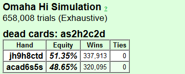 >>44312 Чому? Или типо если туз один, то сразу автоотсос от зассатых А6о, при не особо опасном борде. А если два туза то вероятность что туз завяляется у оппонента не особо велик?