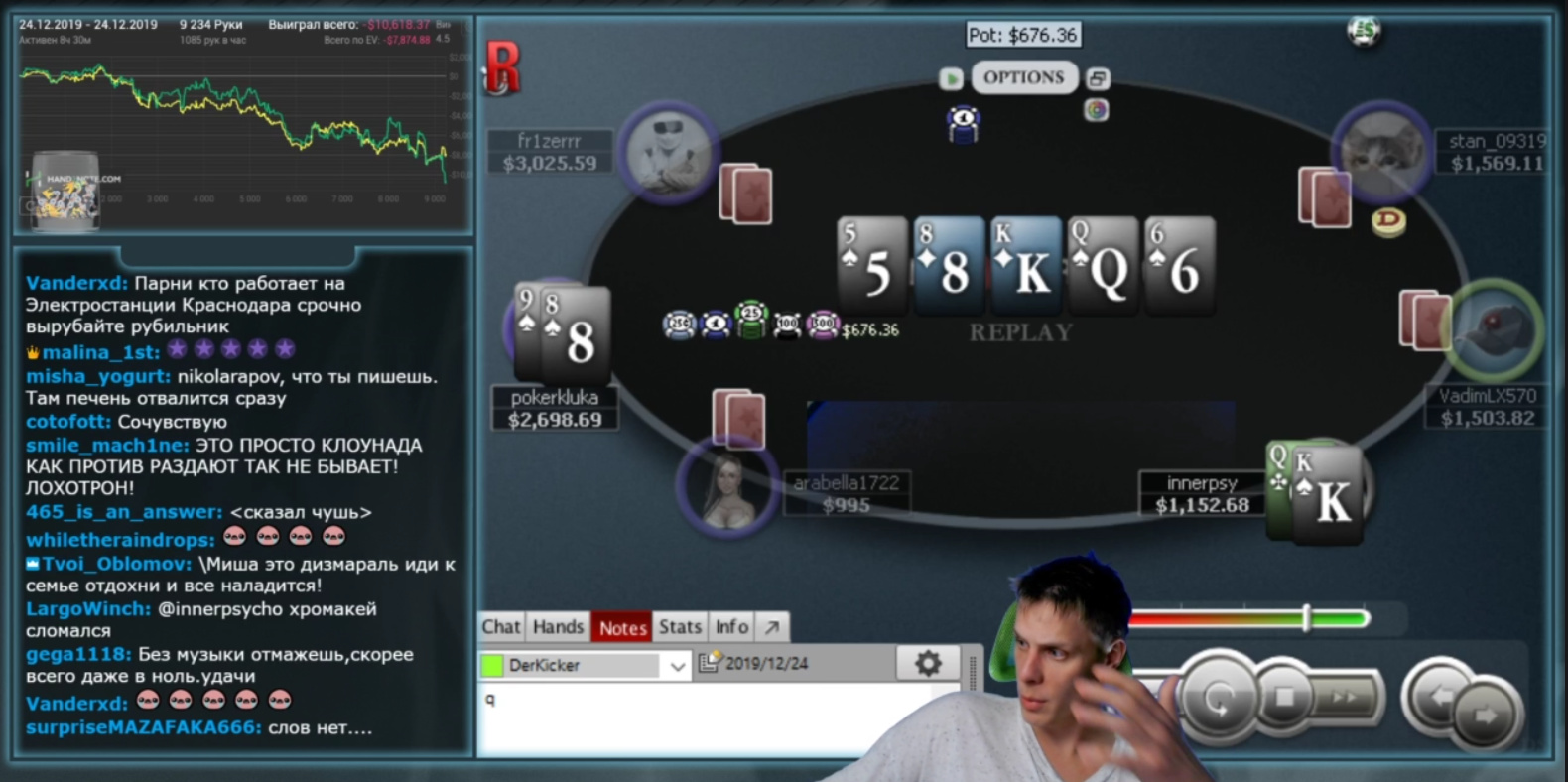 Кста, последнее время дисперсия и ГСЧ на моей, рыбской стороне, ололо. Вот бы подольше так. Смарити какой охуенный щас был переезд королей. Вцепились в друг друга на префлопе, и в итоге, я в оллын, он колл. Ух, сцук, лул.