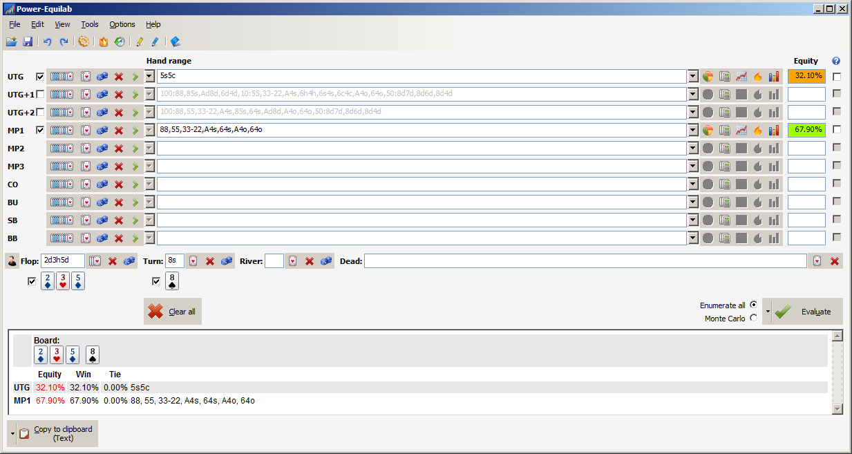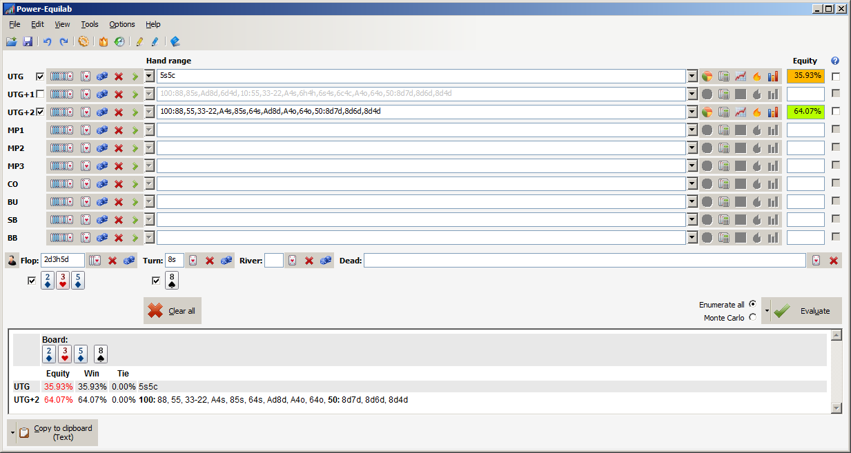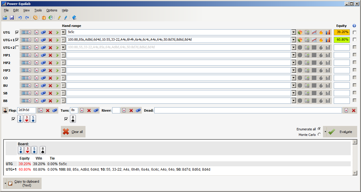 >>44504 Pokerstrategy Equilab есть калькулятор. У флопзиллы лучше функционал, лучше ее купить или приобрести за рейк по аффилейтским программам (я не знаю, есть такое или нет).