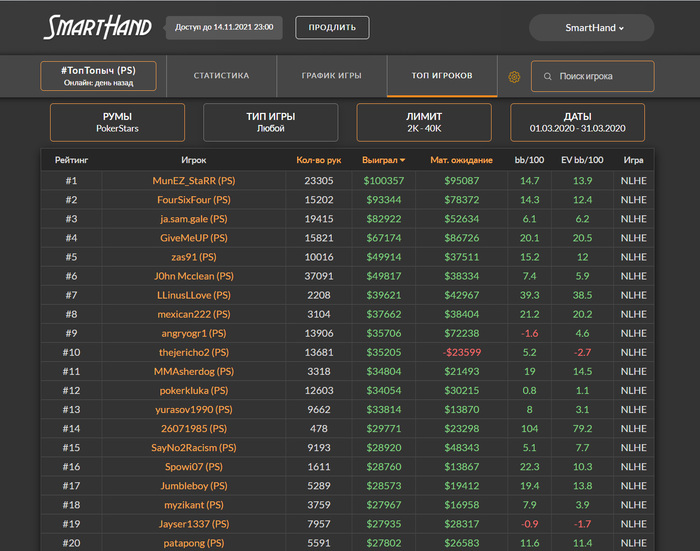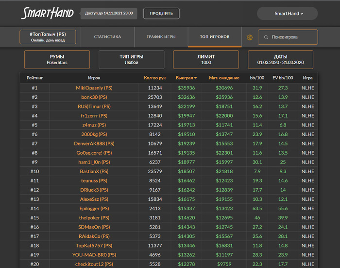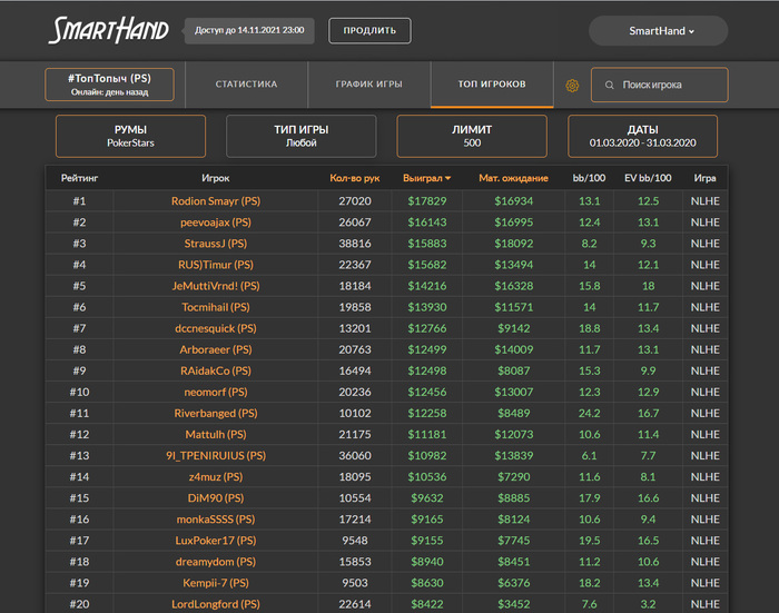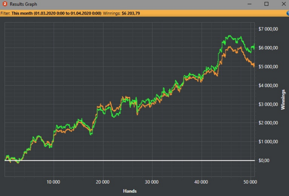 >>44481 Первый месяц с пятизначным профитом, даже нл500 пощупал, а Дроп так вообще там в топ-виннерах оказался. Апнуло конечно, с фишами тут полный фарш как обычно после введения 4-х столов, жаловаться не на что.