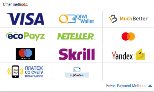 >>42617 Судя по их FAQ: карты Visa, вебмани, QIWI, Neteller, Skrill. Я просто депал только 1 раз 10 баксов по акции и у меня пока доступен только банковский перевод, видимо нужно задонить другим способом для разблокировки. Вот думаю, какой кошель открывать.