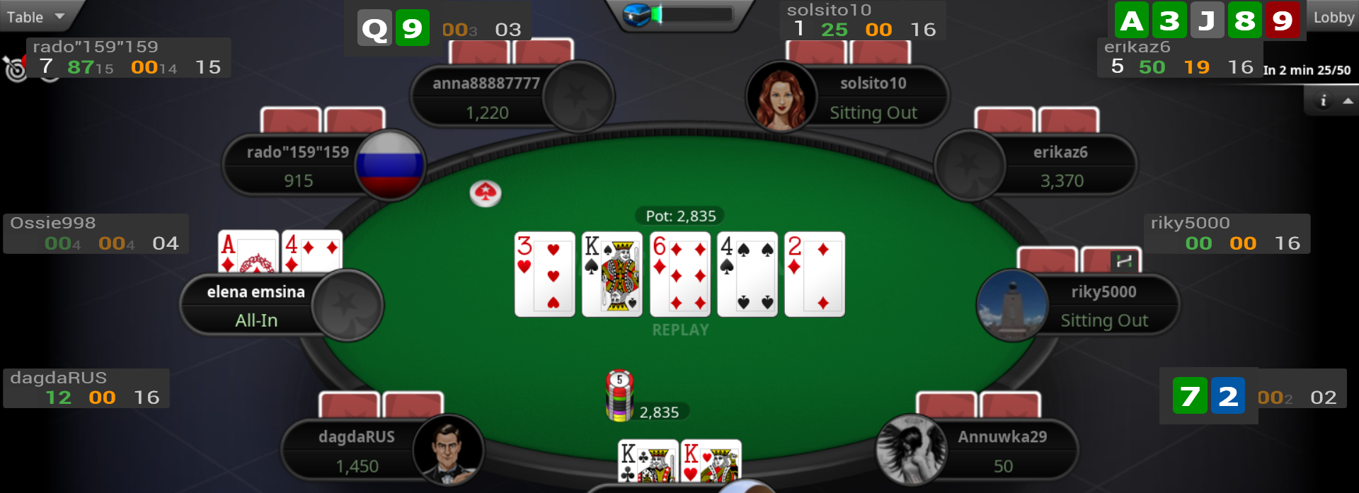 (Как то раз стиллер начал поднимать и поднимать ставку, и я от досады ререйзнул на тёрне. Он замялся и сбросил. Хотя у меня нихуя не было)