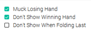 БТВ, что означает нижняя опция? Показ карт если ты последний фолдишь? Была отключена по умолчанию. Это означало что все видели мои нелепые попытки блефовать? СУКА.