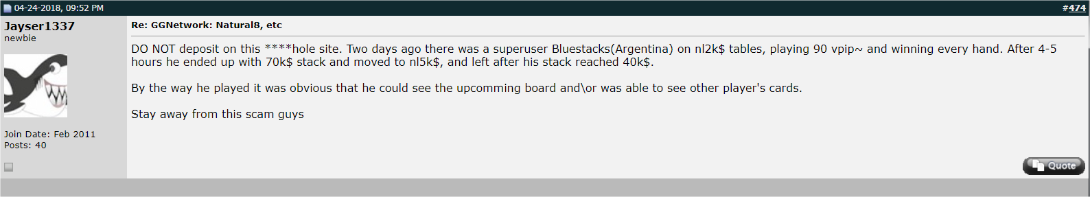 >>48429 >Потому что почти ну вот гляди, простая логика. За один вечер садится играть скажем 1000000 человек, и лимит на игру у них около 100$. Почему бы руму не подсадить ботов? Тогда доход будет постоянный, это 100 000 000$ в день. Они острова то на что покупают думаешь, на рейк твой сраный? Этого рейка не хватит чтобы налоги и откаты просто заплатить, ты блядь как из сказки какой то вылез. На топовых столах там реально может быть честная игра, так как комьюнити. А на нищебродских- боты с правильными руками, на нищебродов, особенно из других стран, всем похуй. Так что анон ты не прав нихуя вообще, нет способа сыграть нормально и честно, если ты из страны где запрещены интернет казино.