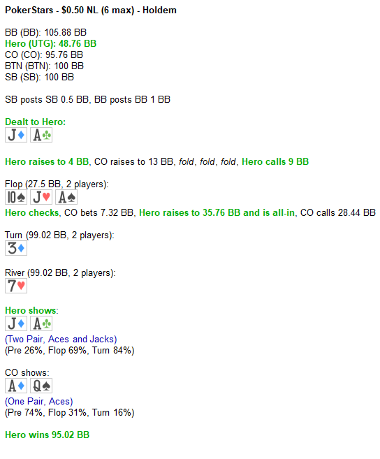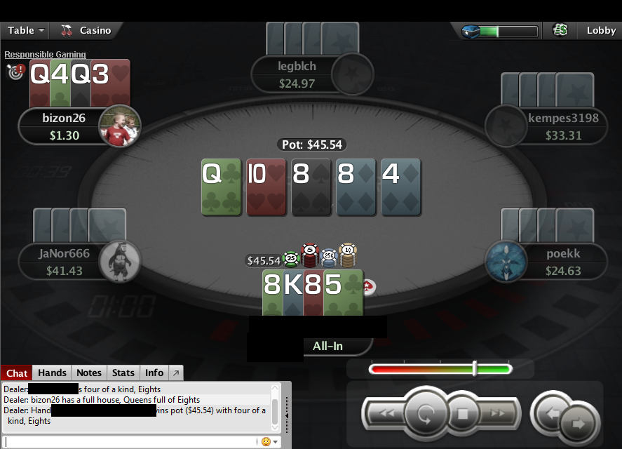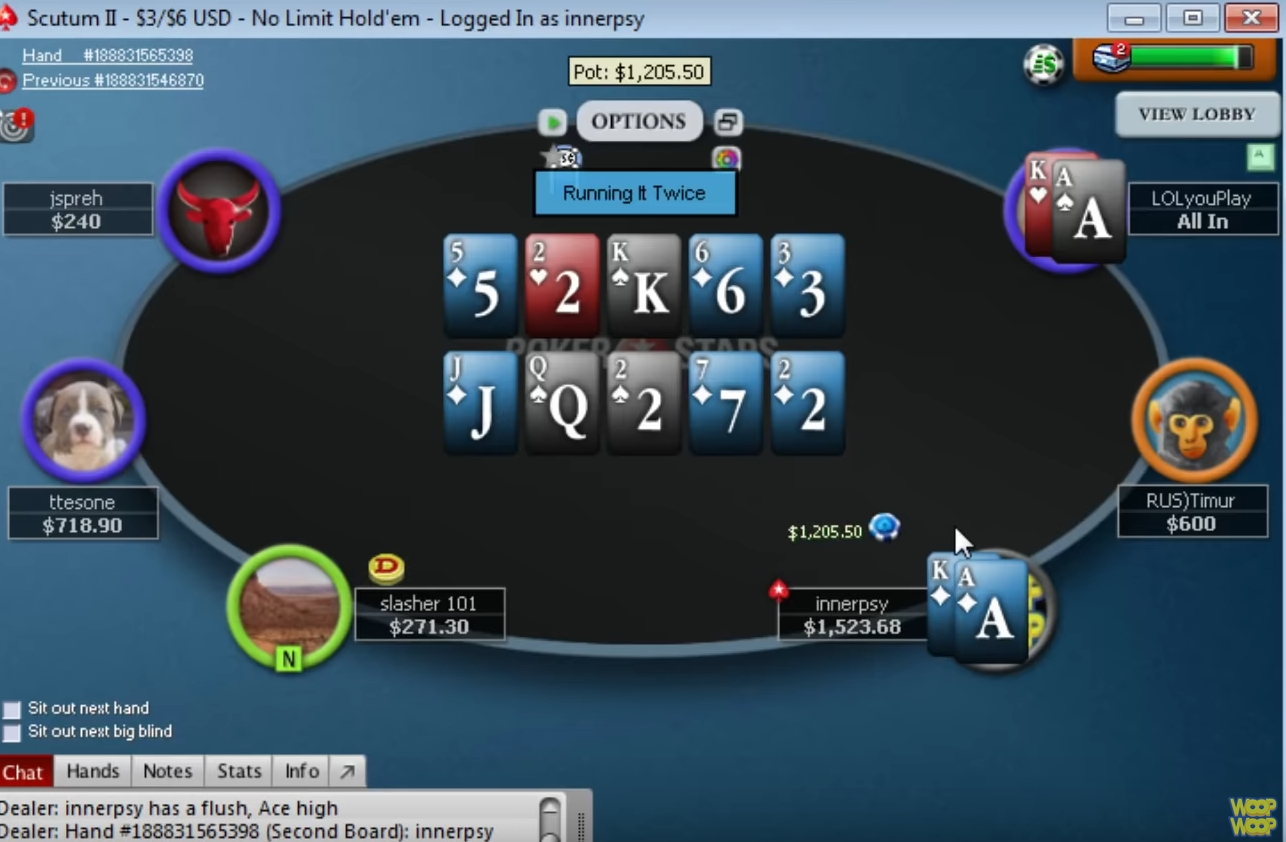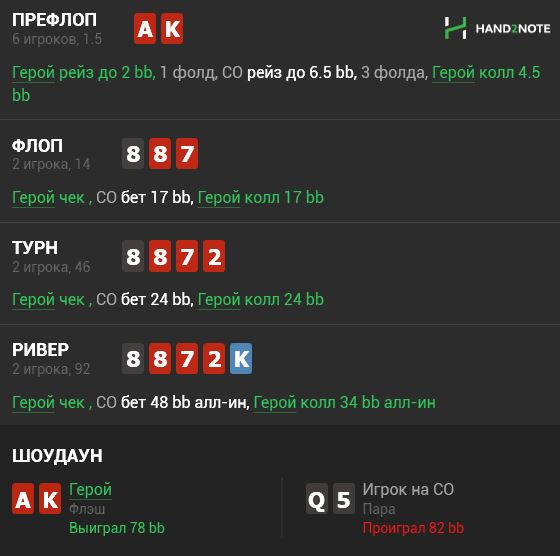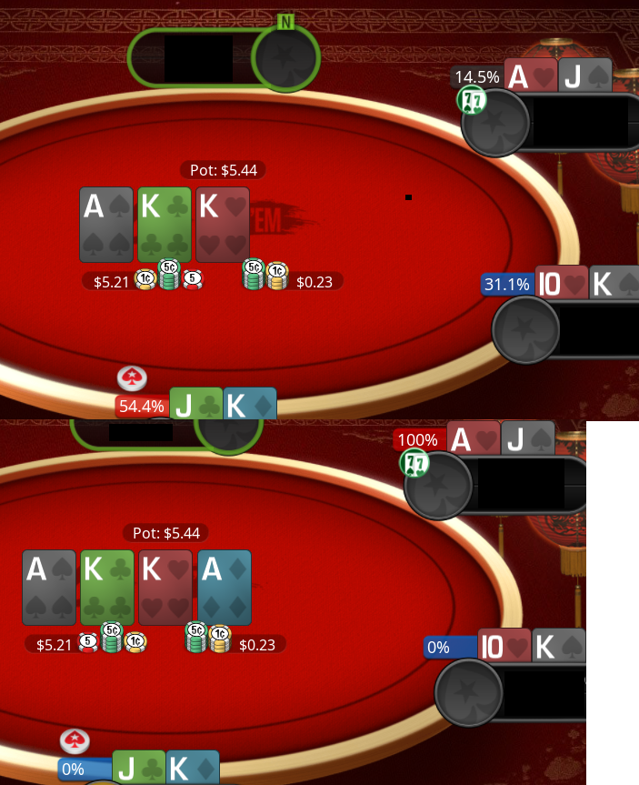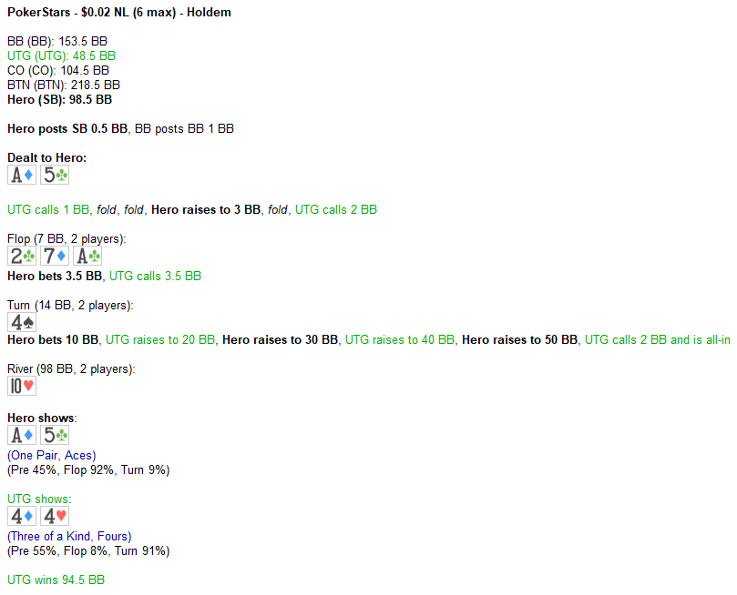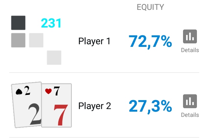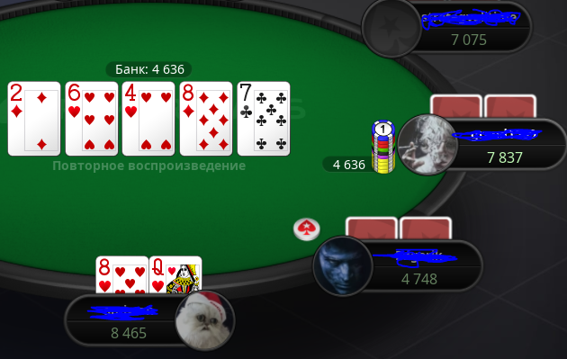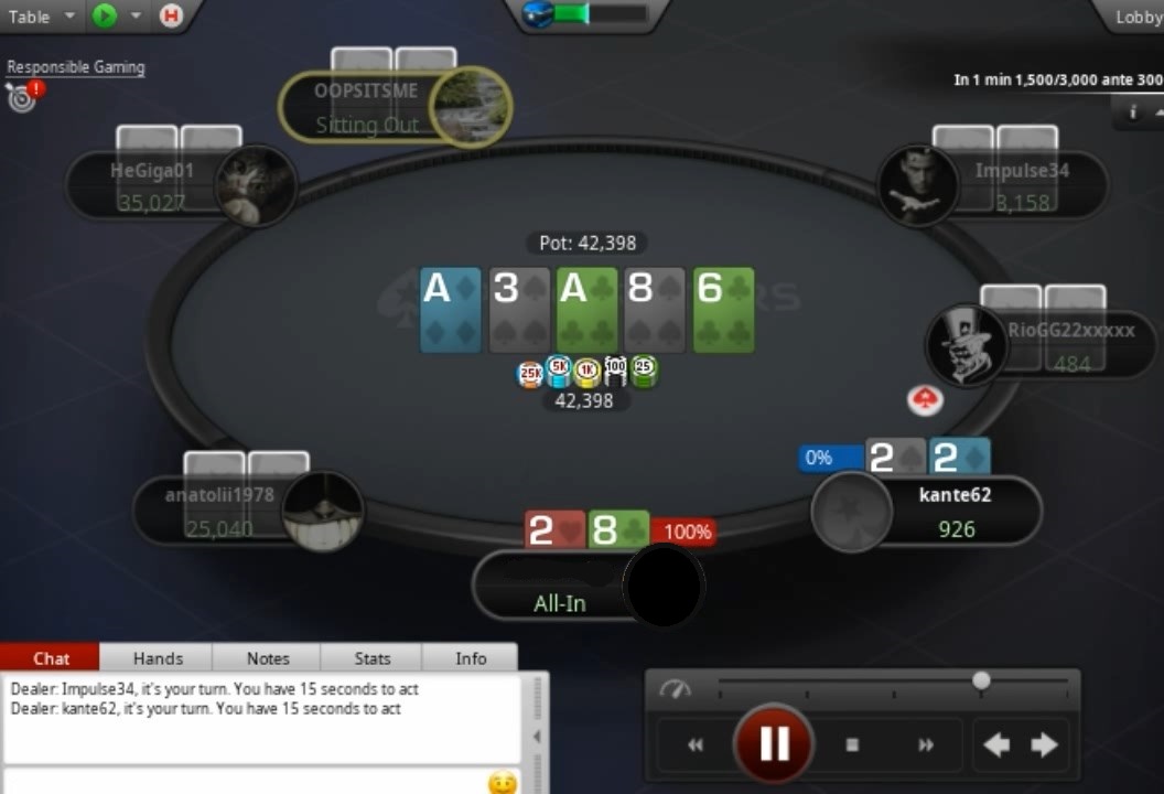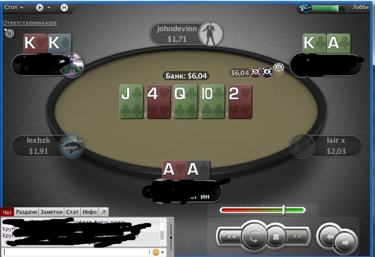 Блять на нл2 надо рейзить серьезно, чтобы эта скотобаза не тянула свои обоссаные ауты, на свой дырявый стрит(дырявый в прямом смысле, а не ругательство) . 5 процентов где-то вытянуть на ривере нужную карту. Похуй что на борде два туза. Будем тянуть до последнего.