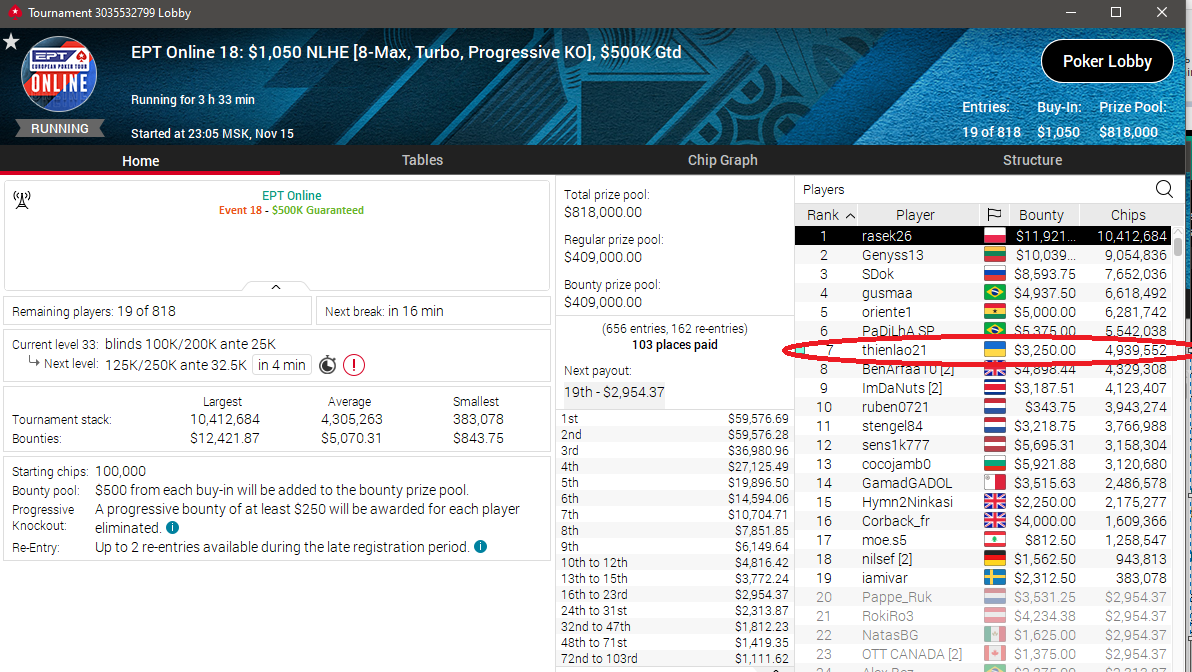 11$ SS турик просто ебучая киломегаполянище.30к ебал в турике было зарегано. И увеличивается. И никто не хочет выбывать, все играют максимально тайтово. Пиздос. Страшно играть.