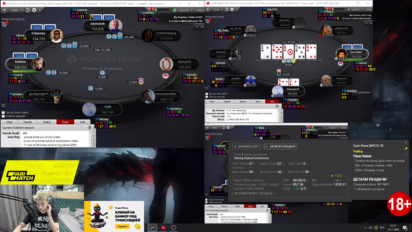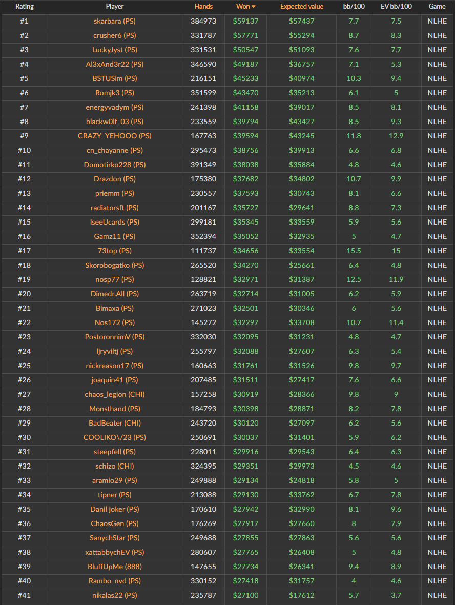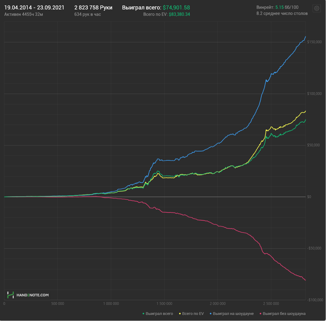 >>48443 >Много поднимать, даже 1к$ в день- такого рум тебе не даст Ну вот 5 дней назад сессию сыграл (пикрелейтед). Да и много раз 1к+ делал, совсем не понял, о чём ты. Если про 30к в месяц, то таких немного, я максимум 10к делал, но и лимиты катаю низкие.