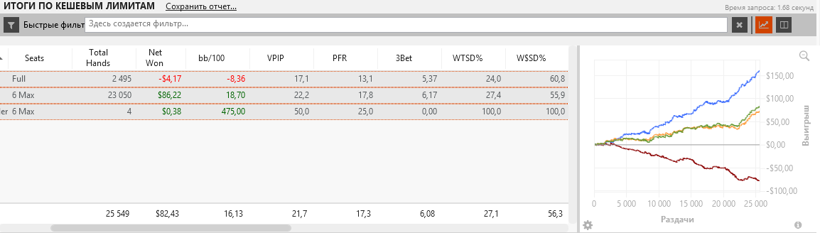 >>44893 2) Так я хочу посмотреть именно по графику раздачу где я залили много, мне че надо сидеть сверять по времени или номеру руки что это была за раздача?