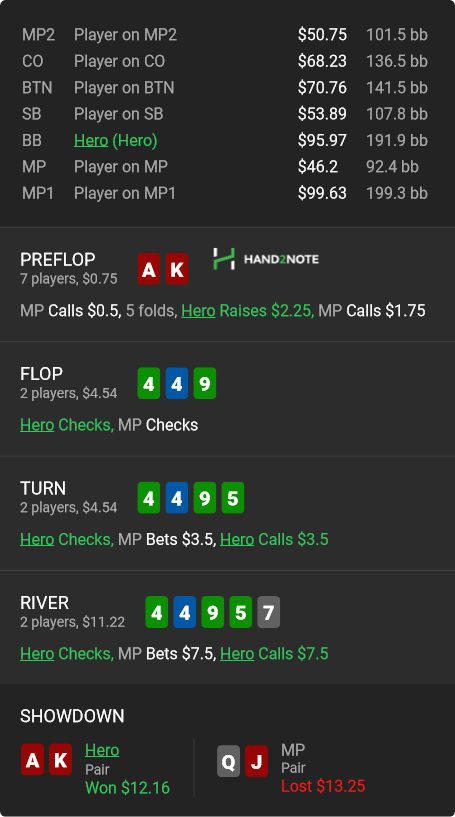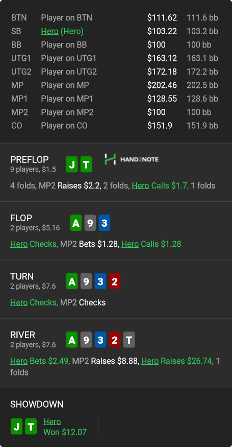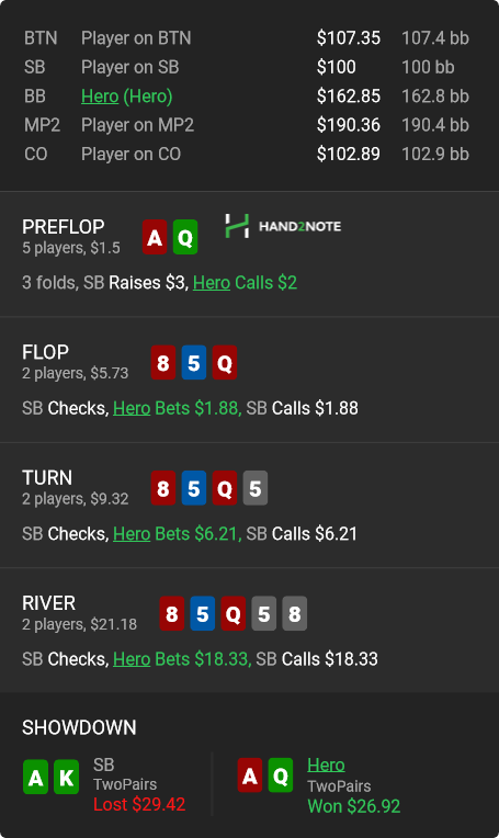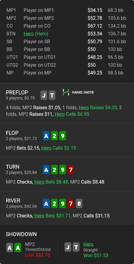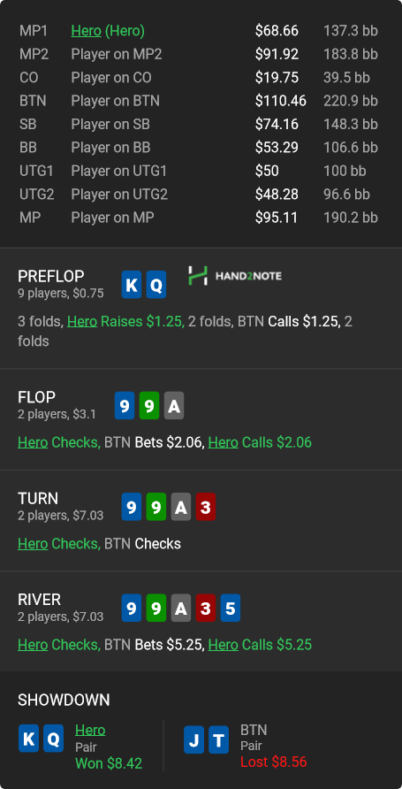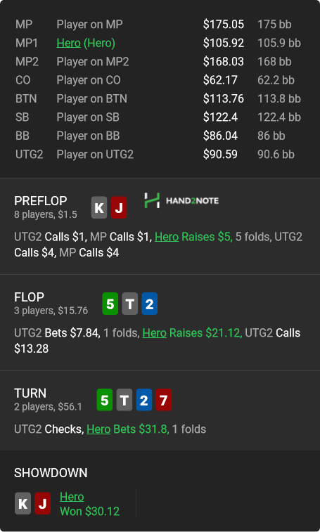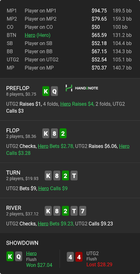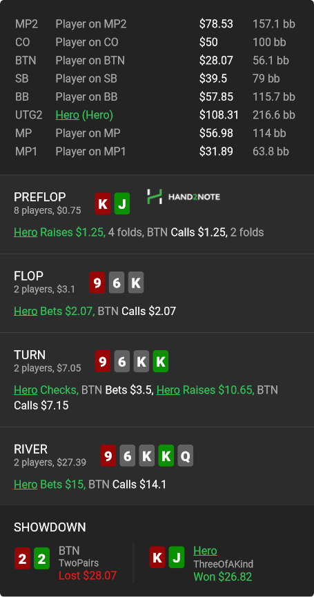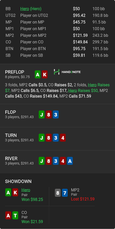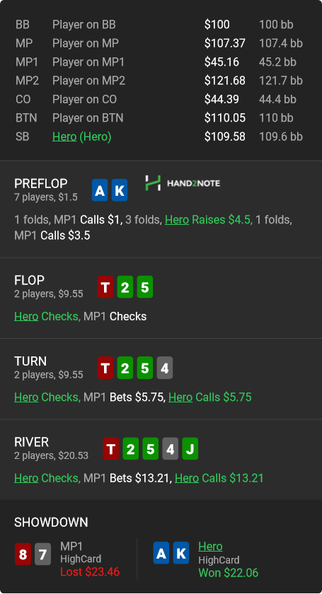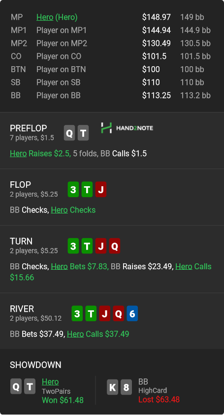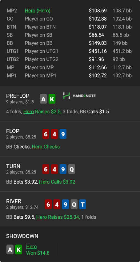 >>44894 Зайди в Сессии, выбери нужную сессию и отсортируй руки. Можешь отсортировать по времени с начала/конца сессии, по размеру самого большого выигранного/проигранного банка, даже по старшинству рук можешь отсортировать. Или во время игры открывай ту же вкладку Сессии и отмечай недавно сыгранную руку для дальнейшего разбора.
