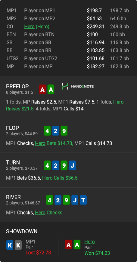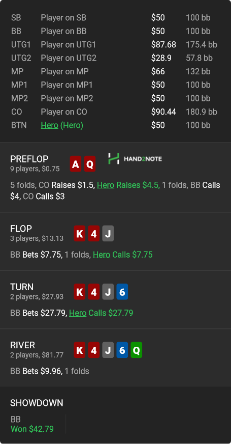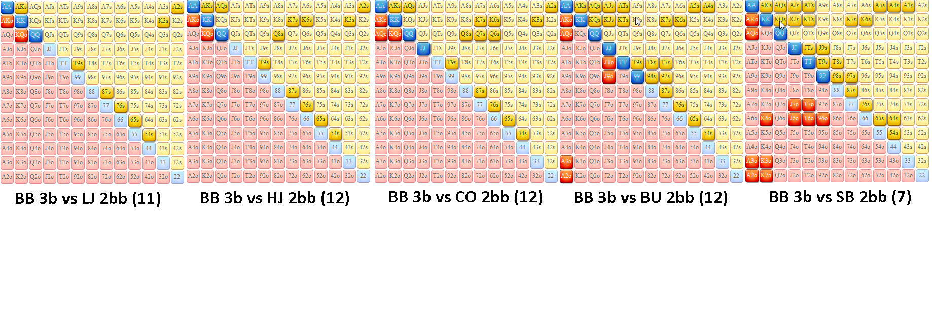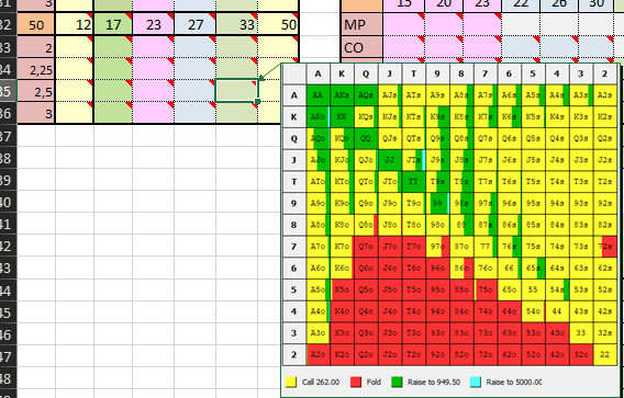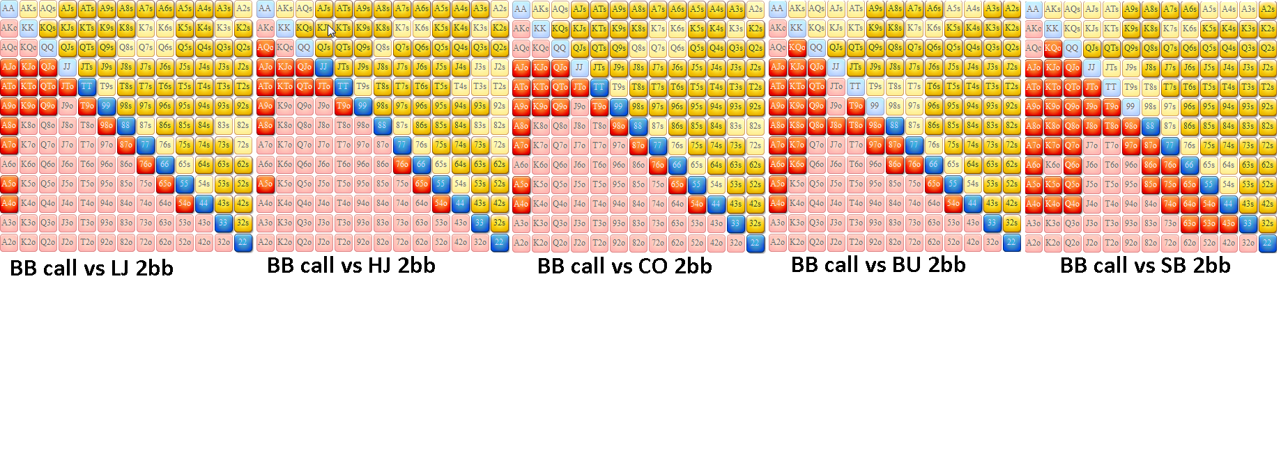 >>44877 20% OPR из UTG. 100% из MP. Колл 3бета в 20% случаев (из UTG 100%, но 22 фолдим). На SB можно 10-20% рестились. Колдколл только под фишей или защитой на стил на BB.