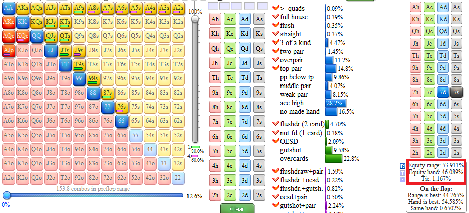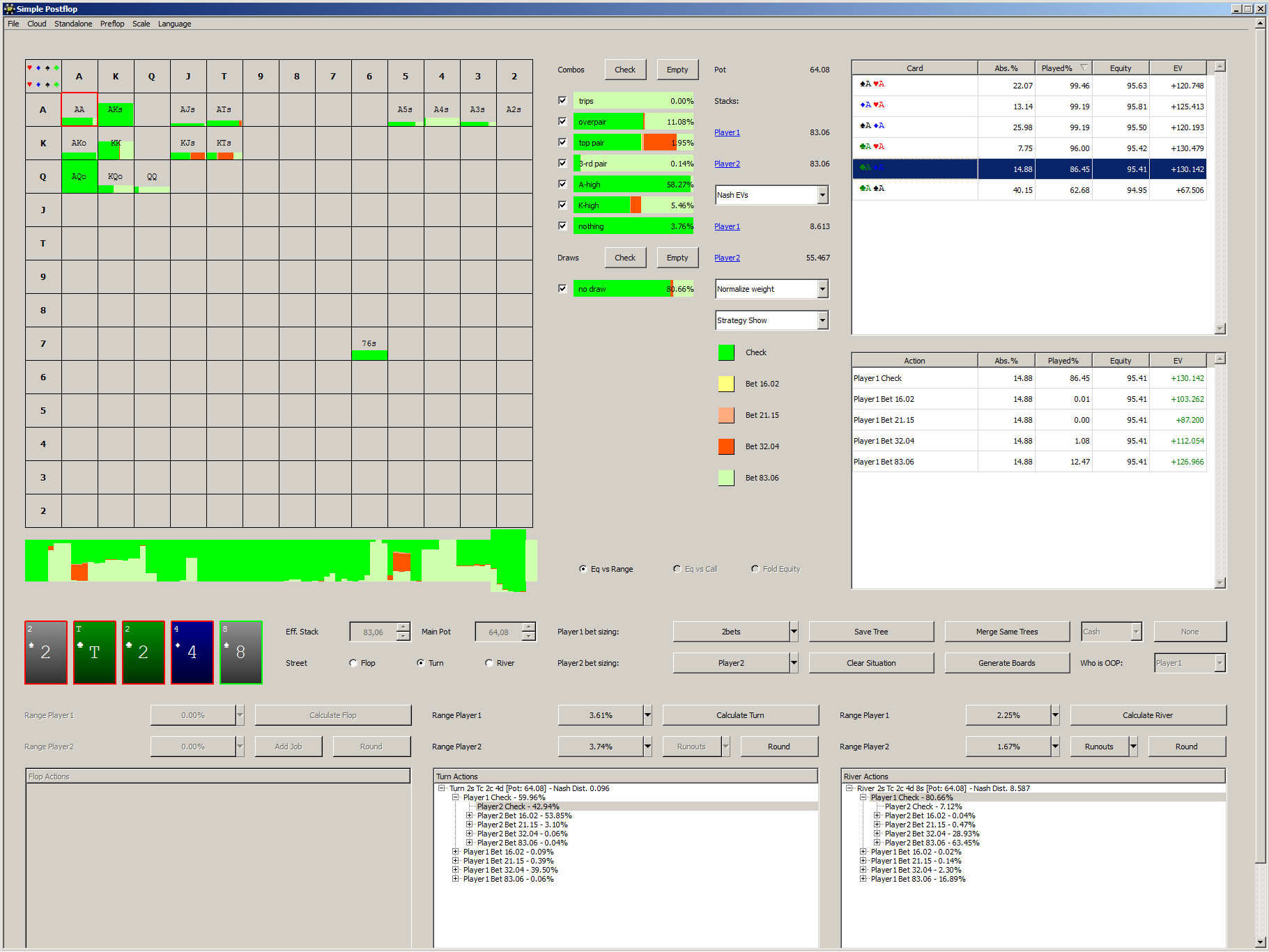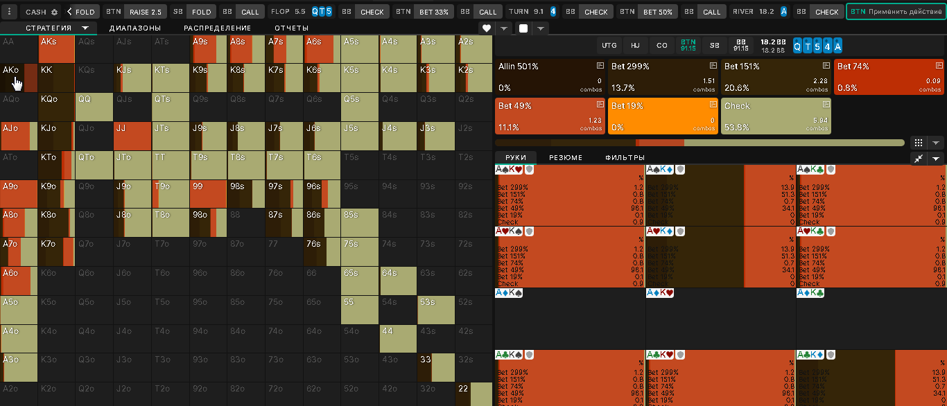 >>49031 Хм, забавно. Пока ты не сказал, я даже не задумывался, что в солверах нет никаких подсказок и пояснений с объяснениями почему и зачем. Вообще солверы же изначально делались для тех, кто сам сидит во Флопзилле и разбирает свои руки, строит диапазоны и т.д. То есть все эти люди интуитивно понимают, как строятся диапазоны и почему они такие, даже если изначально они бы так играть не стали. Даже не слышал, чтобы где-то были курсы по работе с солверами. Хотя наверняка есть... но проблема же не в солвере, а в понимании, как диапазоны строятся в принципе.