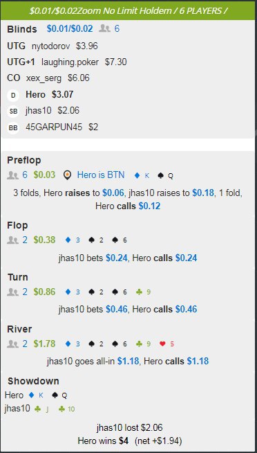 >Старый HM2 там работает или только HM3 и H2N? Хм2 работает на рег столах, но через жопу. Хад на Каждом столе нужно вручную через тейбл файндер врубать. Перешёл на Х2Н. Он и в зуме робит. >6) Zoom покер собирает столы на NL100 или там его так и не играют выше NL20? Лол, выше нл10 зум не играется там. Да и 10 только в определённое время.