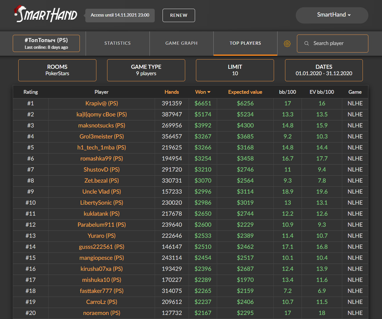 >>44570 (OP) Поиграл немного Редстар 4-10 нл. Фиши есть. Игра немного бешенная. Не оч. удобный софт. За 6.5к рук 18 евро рейкбека вышло вместе с бонусом. В апреле плотно покатаю, статус набью.