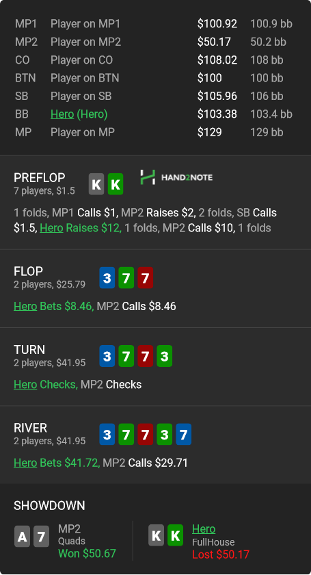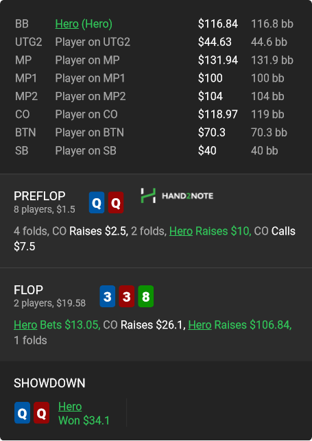 Помню на стадиумной серии, получил билет на твиче, и два раза за турик самоубился об тайтовика. Первый раз у меня был больше стек, ну и дамы в тузы. Второй раз флеш с флопа, против моих двух пар. И знал, что у него флеш, но не могу сбросить. Ну охуел совсем.
