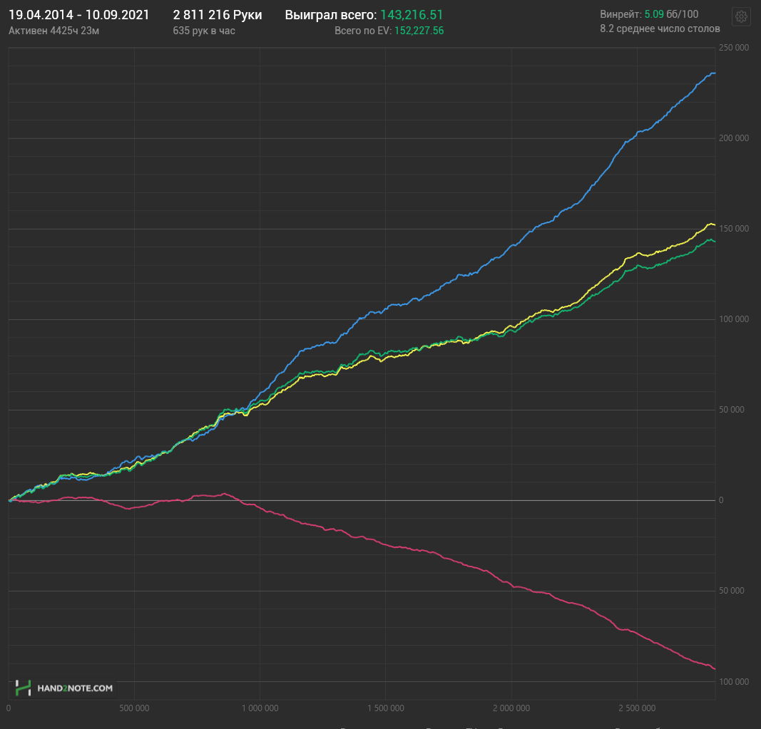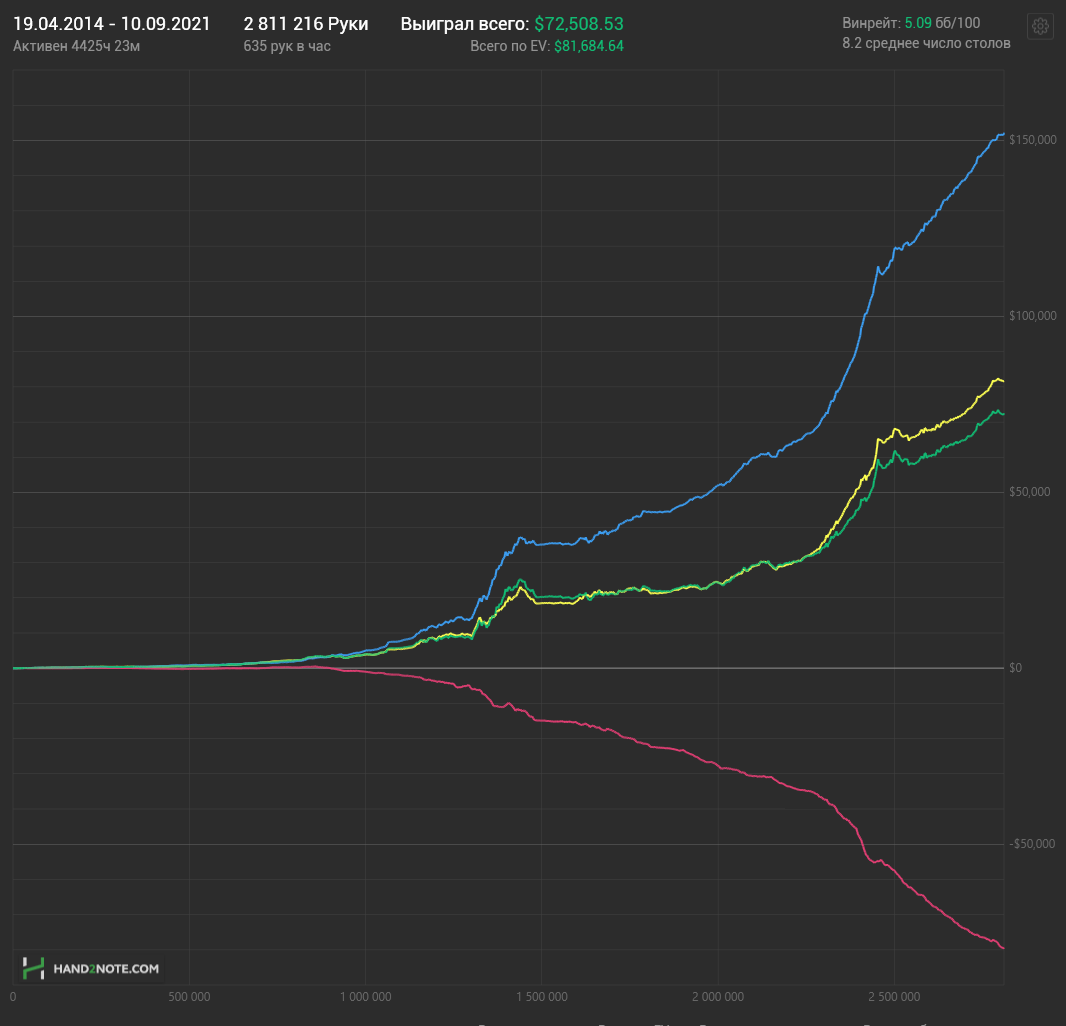 Пикрелейтед график за этот год без учёта третьего рума, заносов в МТТ и рейкбека (выходит около $30к). Не особо боты рума и подкрутка напрягают меня. Каким же разъебатором бы был, если б убрали чёртовых ботов, остаётся только фантазировать.