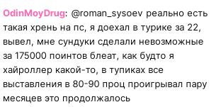 Выводил раньше с сочей на карточку. Щас как илитному фишу дали билетик(я ужо писал тут). Чот насосался хуёв вчера и по итогу не апнул БР, даже слил на пол доллара. Итого 10$ с копейками.