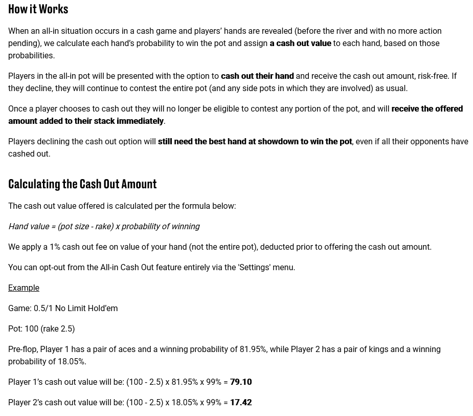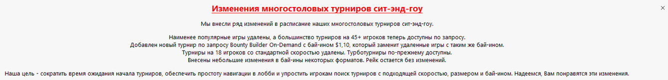 Дорогие игроки! С радостью уведомляем Вас что релиз функции Run in Twice запланирован на июнь. 01.06.22 RIT функция появится во всех кэш-играх NLHE ниже NL50 (SB €0,25/BB €0,50) и Speed Poker кэш играх. 13.06.22 функция станет доступна для NLHE кэш игр на всех остальных лимитах.