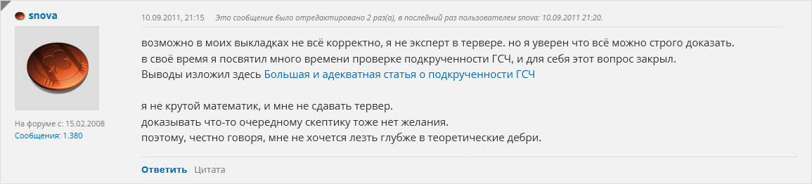 >>48415 Но ведь тогда покерстарс запустит своих ботов в рум, которые будут посылать "правильный" рандом, а челиков, которые честный рандом посылают временно отключат! Ты об этом подумал?!