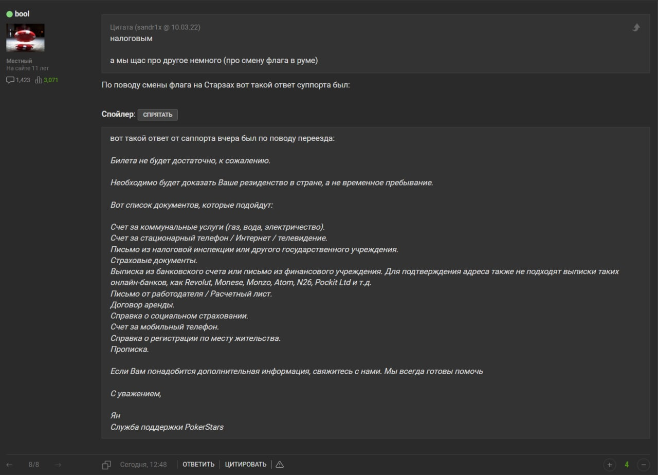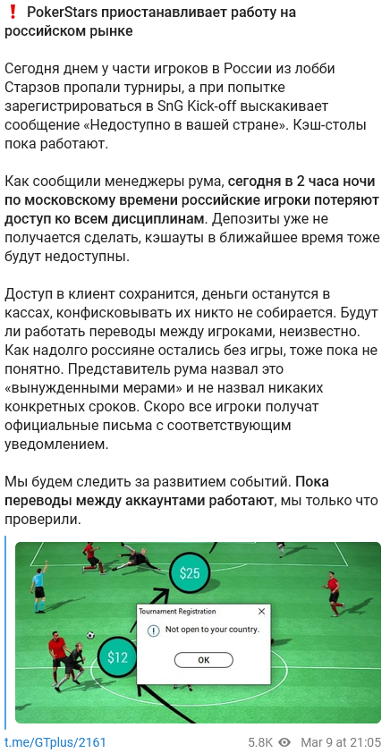 Посоны, как быть с выводом денег с PokerStars? Я пару месяцев не играл, а теперь кажись заблочили всё. Я пользовался вебмани, но теперь они под контр-санкциями, кажись. Только вот киви активны пока для депозита, но я не знаю будут ли они на вывод работать... В кассе написано, мол деньги ваши у нас в безопасности, и если ситуация улучшиться спокойно выведете. Я тоже пока не особо нуждаюсь, так что могу подождать месяцок. Но что, если ситуация не улучшиться? Пользоваться какими-то менялами из других стран и как-то им переводить? У меня сейчас в депозитах, вообще нет рабочего варианта, даже крипта пропала, хотя там какая-то была. Есть ли смысл возвращаться к игре, или переждать на случай, если там всё накроется? Нужно ли торопиться и выводить сейчас через менял по невыгодному курсу или шанс, что вообще стразы отрежут не велик? В теории же можно просто съездить за границу и как-то там снять со счёта? Скажем из Финляндии или Казахстана, какого-нибудь...