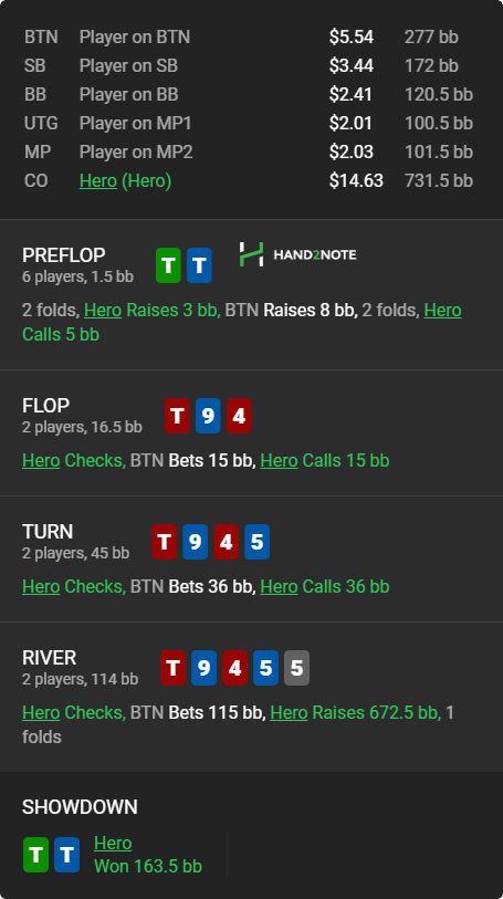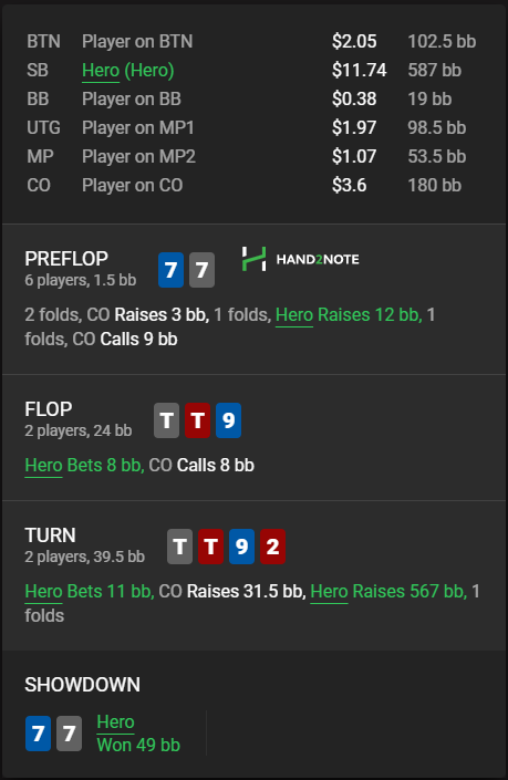 Чем у них в голове насрано, когда они колят рейзы в 3бет потах с голыми валет-дама с аутами тока на пару с хуевым кикером? Может триггерит плоский рейз, а мне похуй рейжу как хочу. В первой раздаче все очевидно - подгатавливаю удобный срп для пуша тёрном и тут хоть плоский рейз, хоть 3х годится.