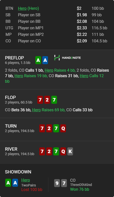1) Можно было и не пушить, но мало ли с чем там меня может уравнять фиш, может полколоды вколит, а стритов не так уж и много. И жопа слишком горела, чтобы не пушить. 2) И тут можно изи отскочить, ведь очевидно что с KK он не поставит тут, когда его бьют и нижние сеты JJ-QQ, и старшая оверпара AA. Похуйколл из-за горящего пердака. 3) Без комментариев, просто пидорас.