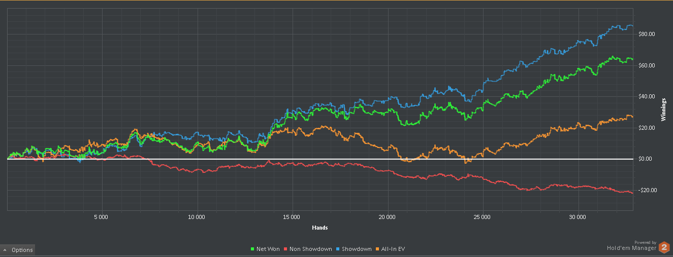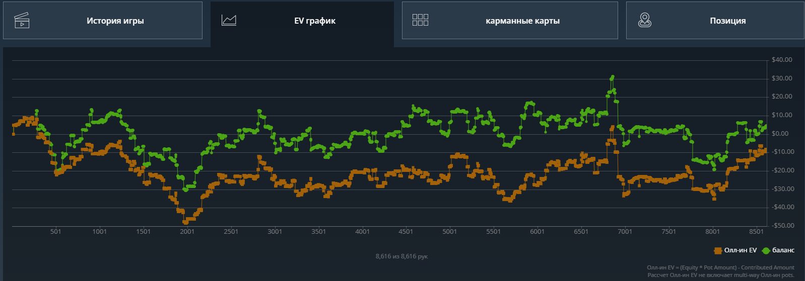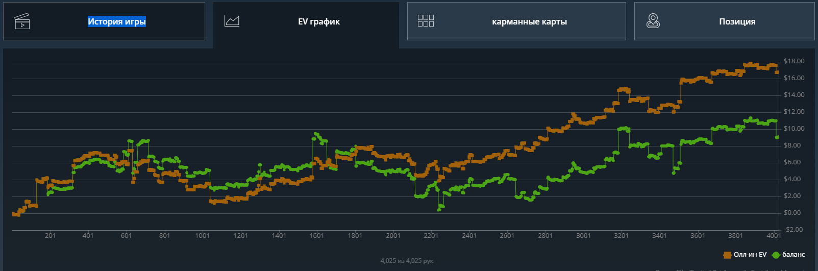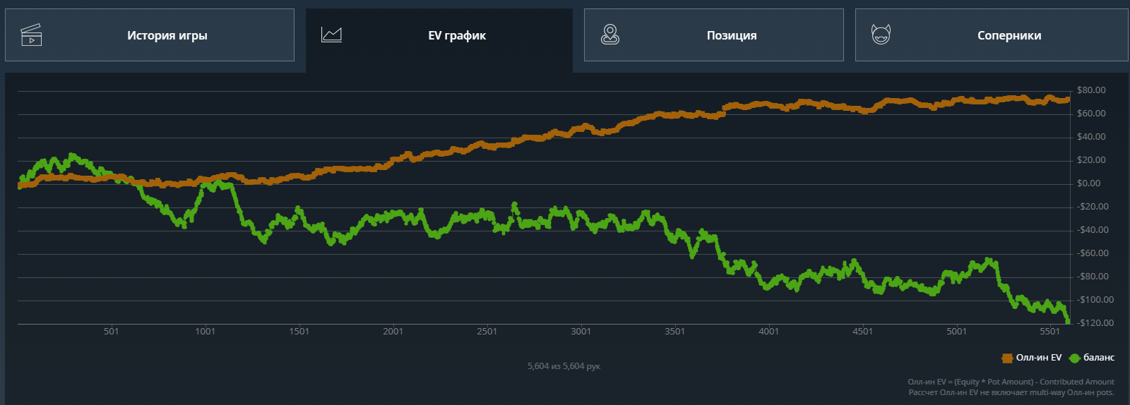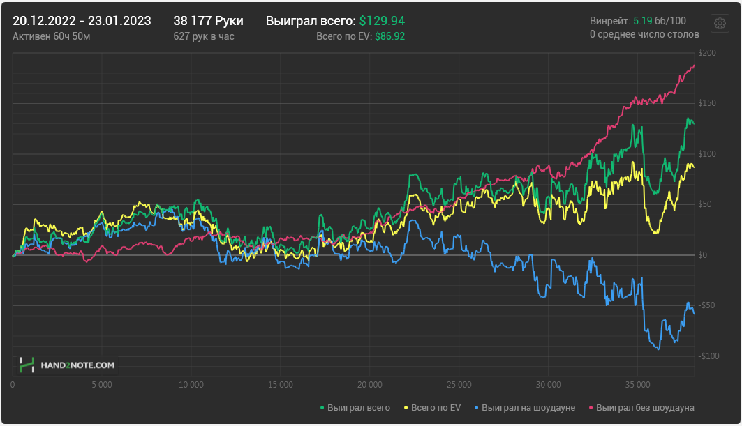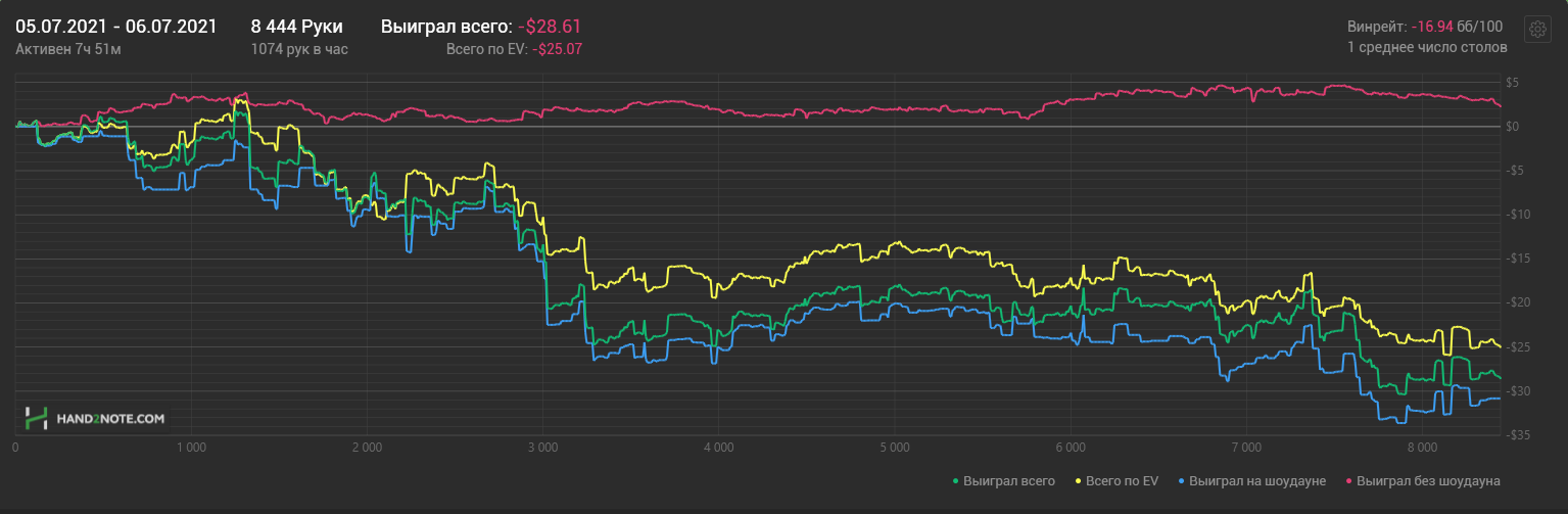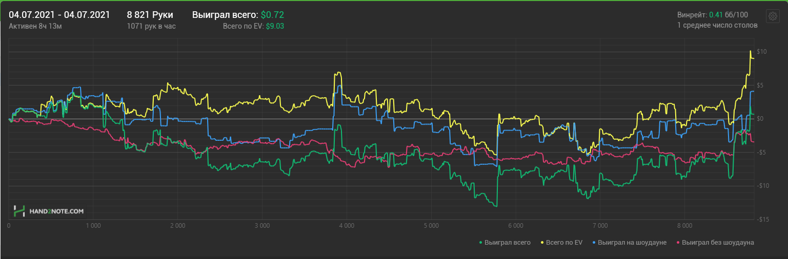 Какого-то хуя не могу нормально плюсануть по ev, 20$ за 8к рук это просто катастрофа из-за огромного рейка. Вроде ничего не менял в игре. Джек не выпал, по кассе -161.31