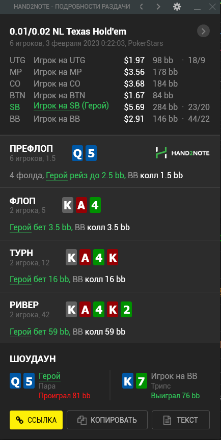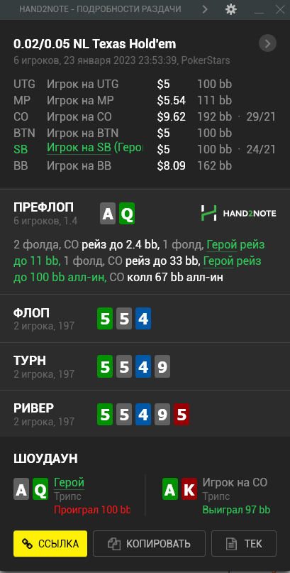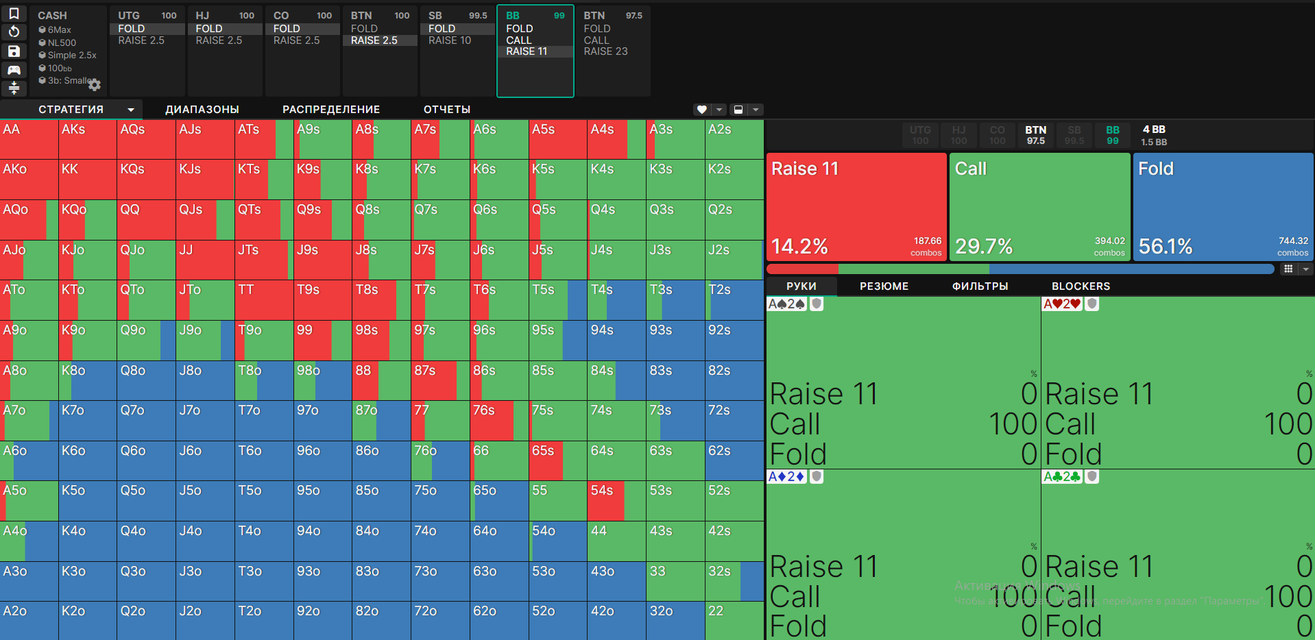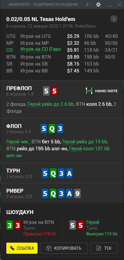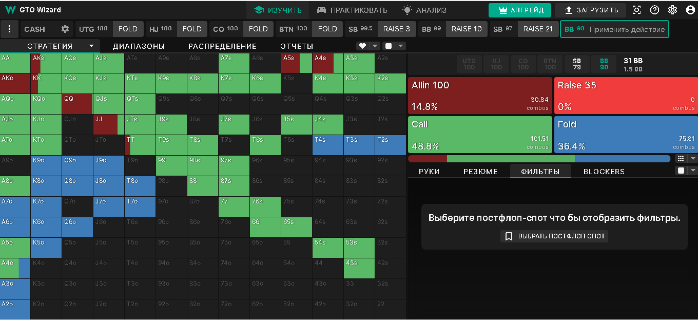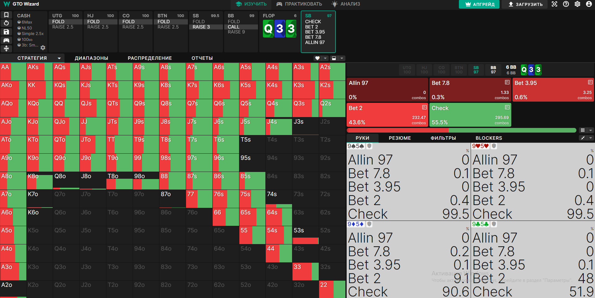 У меня проблемы в выставляшках префлоп, солверные ренжи мне кажется наёбывают меня, постоянно я снизу, особенно в поздних, где визард рекомендует пушить супер лузово. BvB ответил на 4бет пушем с QJs, SB показал ракеты и поржал надо мной.