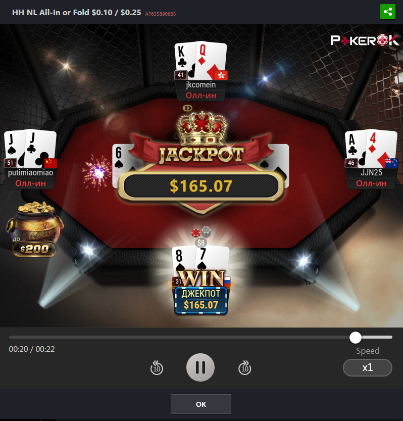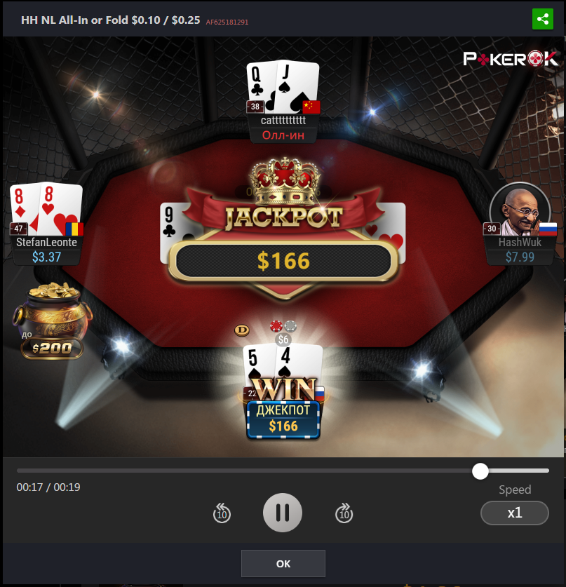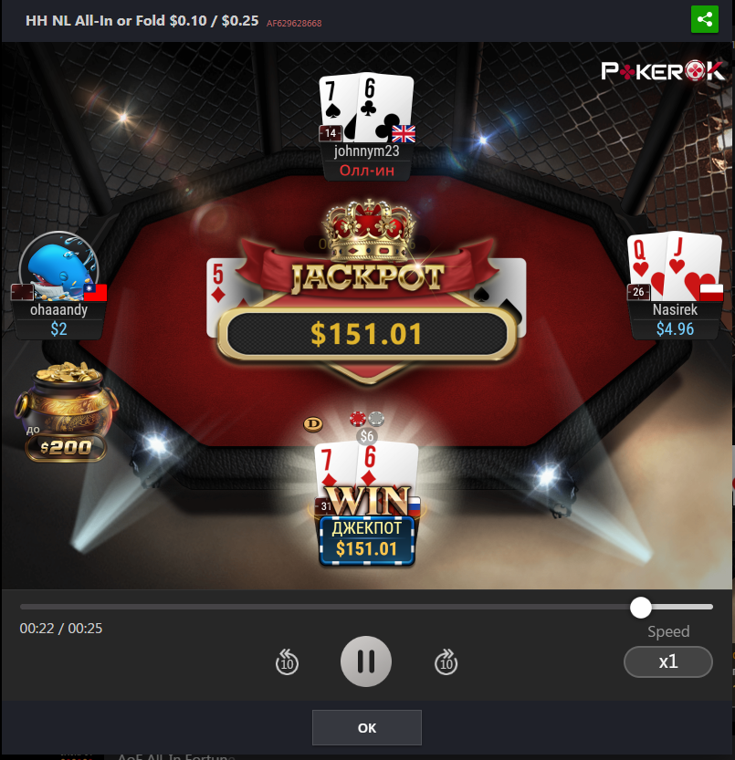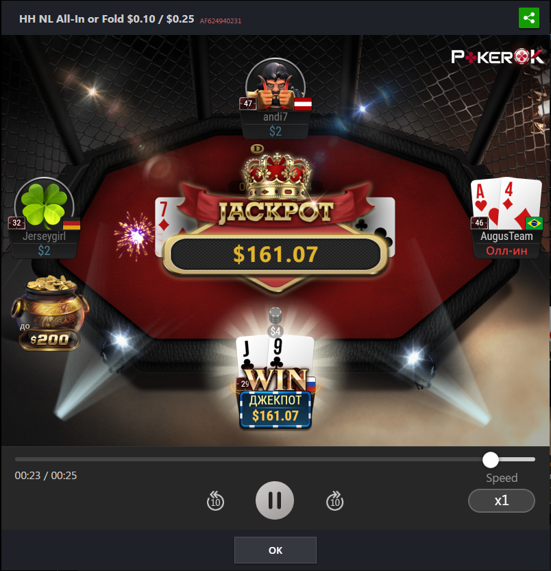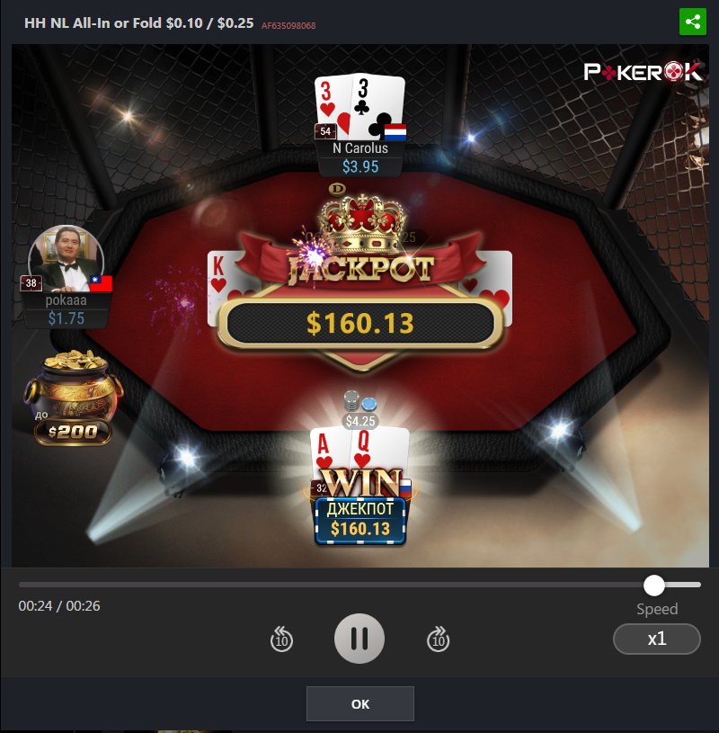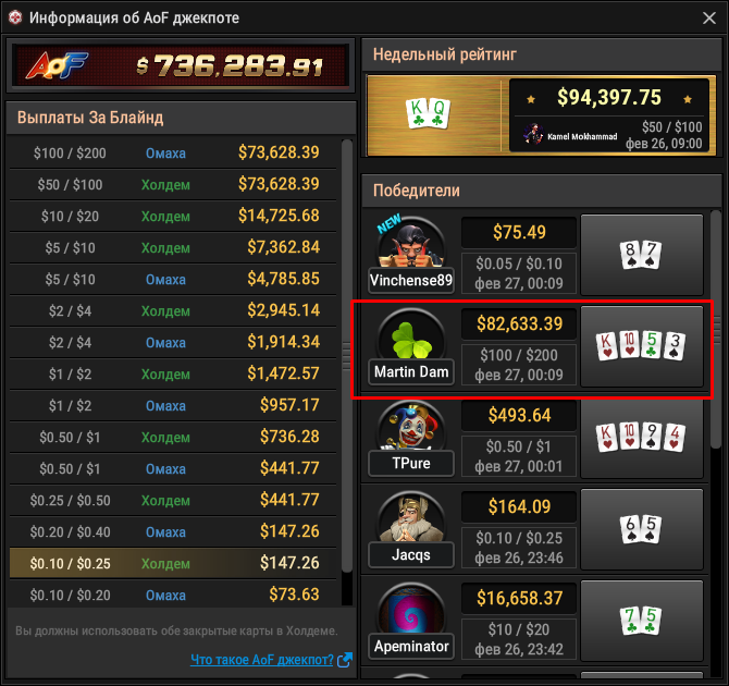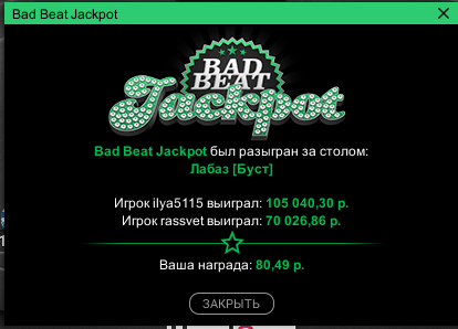 На данный момент пул джек-пота коцаный, приз будет 135$ если выбить, а это мало, так что сегодня, пожалуй, без пушфолда поживу ну или полудоманю немного на самом низком лимите.
