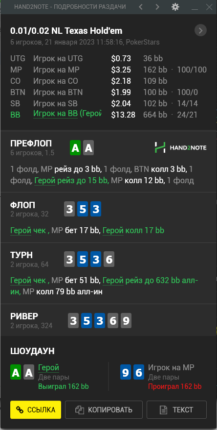А тем временем ваш покорный слуга опп продолжает чекать с тузами, а оппы продолжают его обссыкать. С каким же говном они залезают под 3-4-беты, и ведь доезжает!