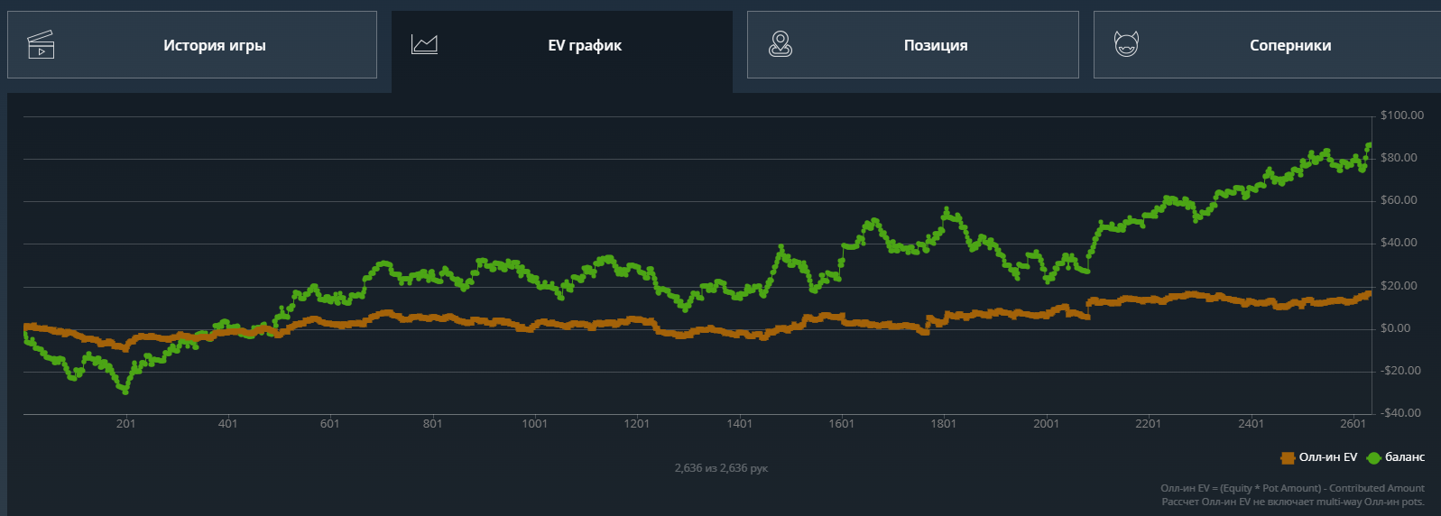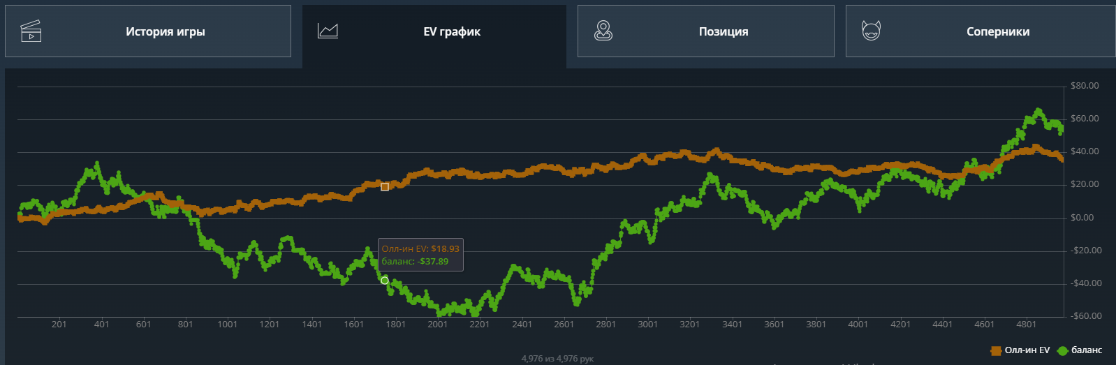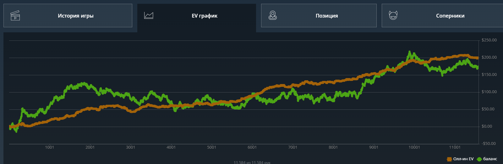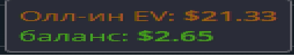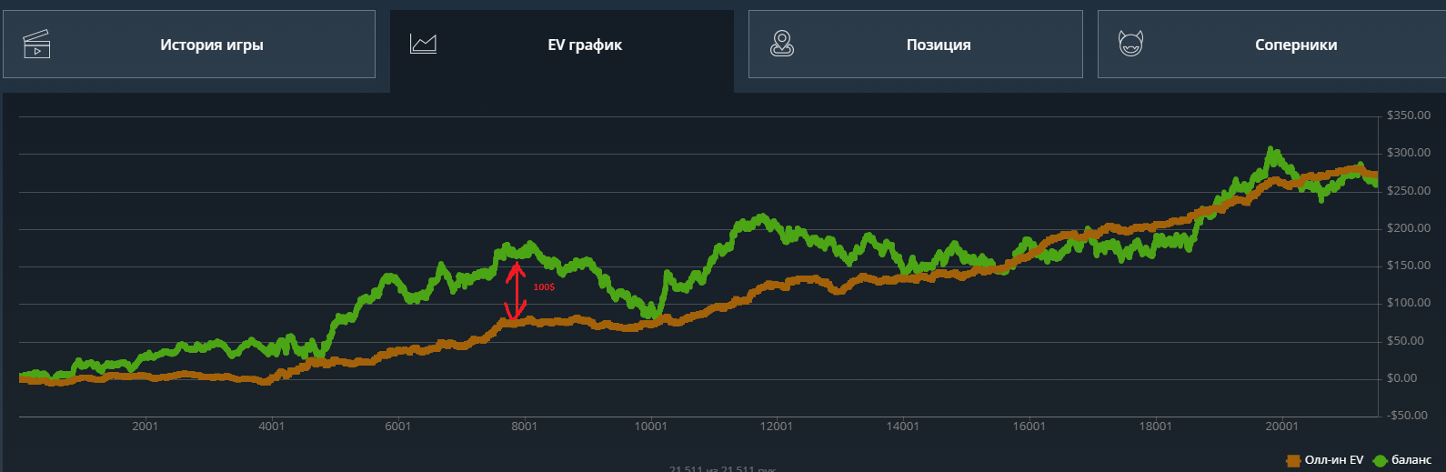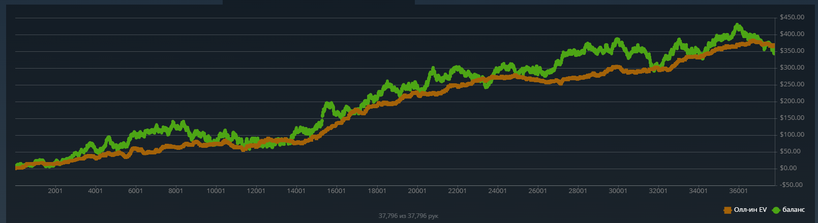 Но 50 долларов все не проигрывались и не проигрывались,я уже заебался катать и хотел покушать и тут заметил, что люто заливаю по ev. Я не расширялся по спектрам на кураже, просто сдавали лютое кулерное говно - постоянно под доминацией, которую я раз за разом переезжал, как будто заказывая карты силой мысли.