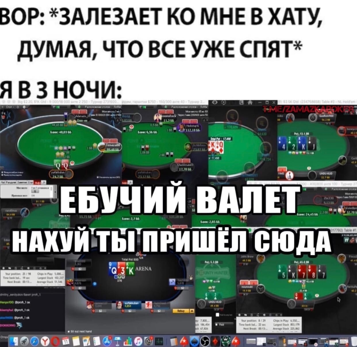 Отлично сдаёшь, блядо покерок, надеюсь тебе в старости так же стакан воды сдадут, как ты карты в дорогих спотах, хоть ты и не одушевлённый прредмет, а всего лишь покер рум.