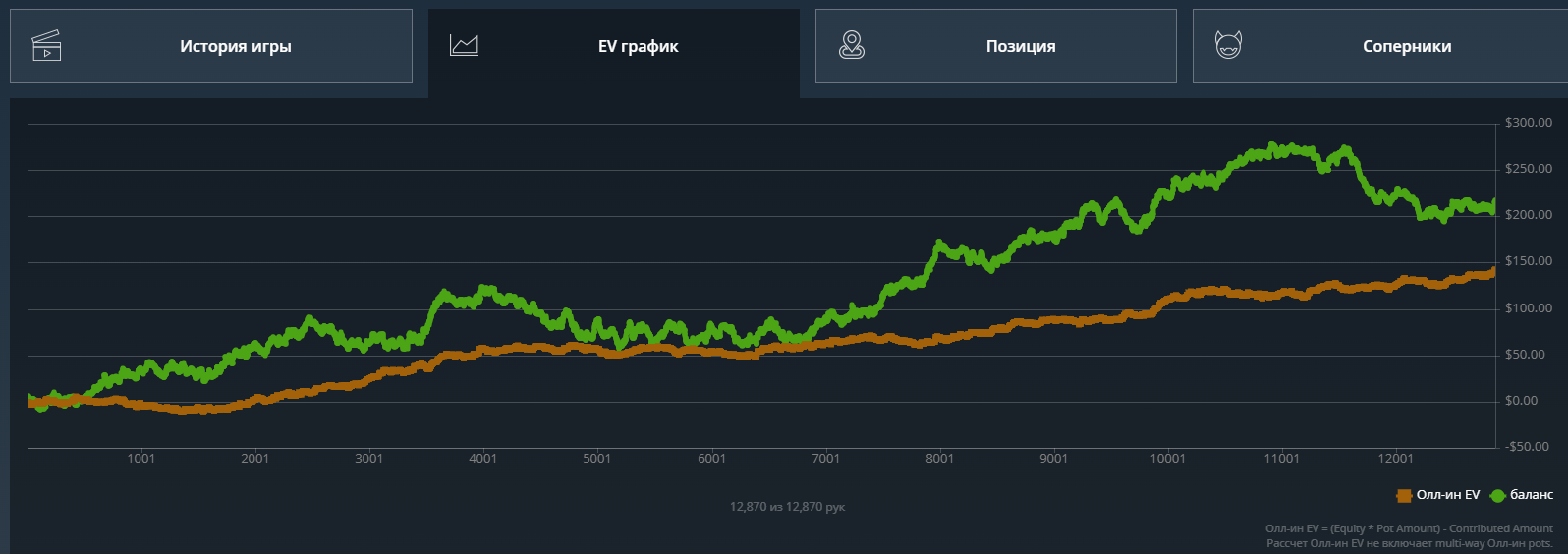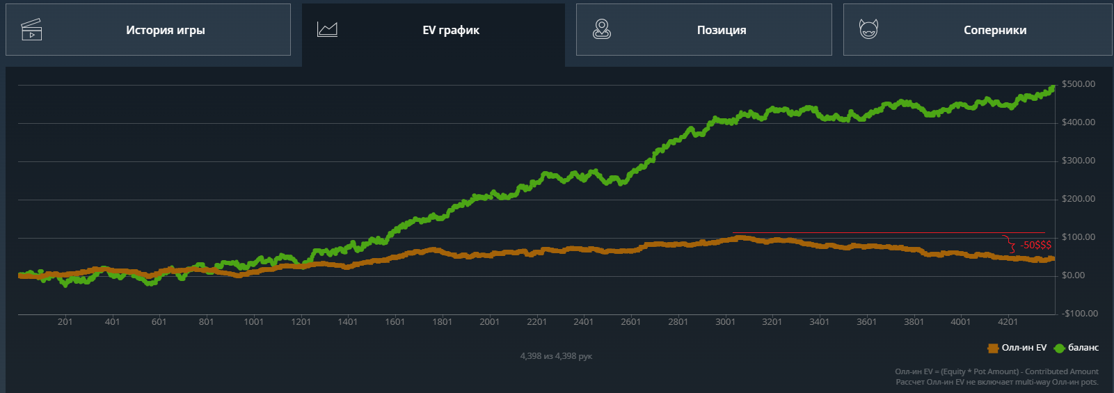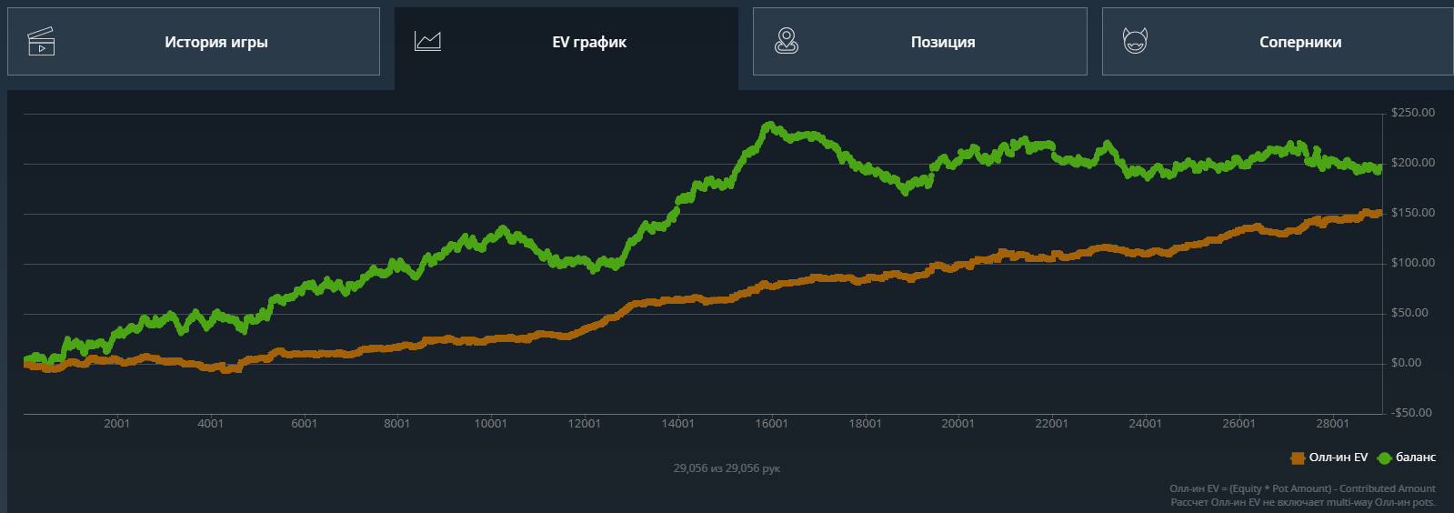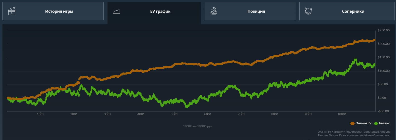 Кароче, решил что залив по ev 50 баксов тоже считается, все же эта линия самая важная, важнее даже реального выигрыша и катапультировался со столов.