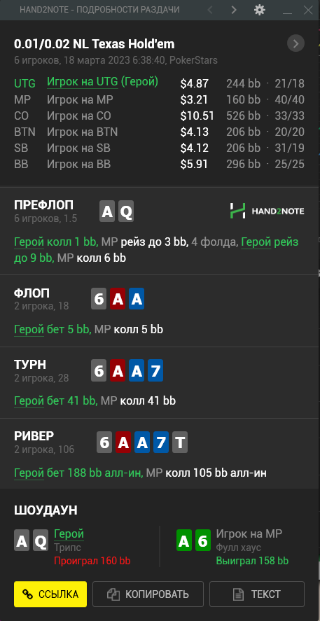 А вот ещё 2 раздачи, с которых пригорело, в дипах начинается ебала эта с 5-6 бетами. Тут меня просто выдавили из банков, как кусок гавна! Хотя очевидно, что если опп макака, то у него явно не одни ракеты в ренже будут, но бля очково зарубаться просто с АК разноцветными. Что делать пацаны в таких спотах, скажите.