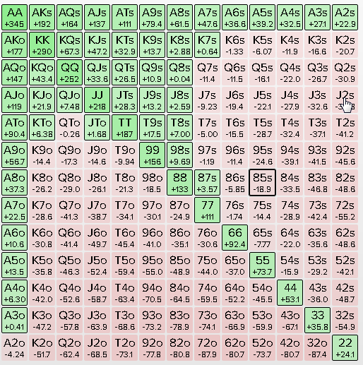 >>50667 Я так понял этот ебик просто посчитал в icmizere игру без рейка, потом придумал маня плюсовость от джека, с которой можно пол колоды играть, и высрал на реддит, охуенно. Вот пуш на 8бб с СО без рейка, если вычесть -10 от каждой руки, получается что 98s уже граничная хуйня, а он предлагает всякую хуйню вплоть до 64s